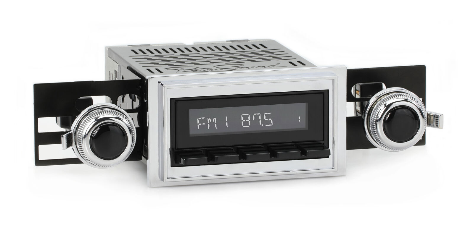 The RetroSound® RetroRadio® is our most versatile Radio Face, designed after traditional 2-shaft radios with classic push-buttons found in thousands of makes & models from the 40s-80s. Combined with hundreds of faceplates, bezels, and replica knobs, the RetroRadio is the most authentic solution for adding modern audio to classic cars and trucks. The RetroRadio is available in black or chrome, with the choice of black, chrome, or ivory push-buttons.