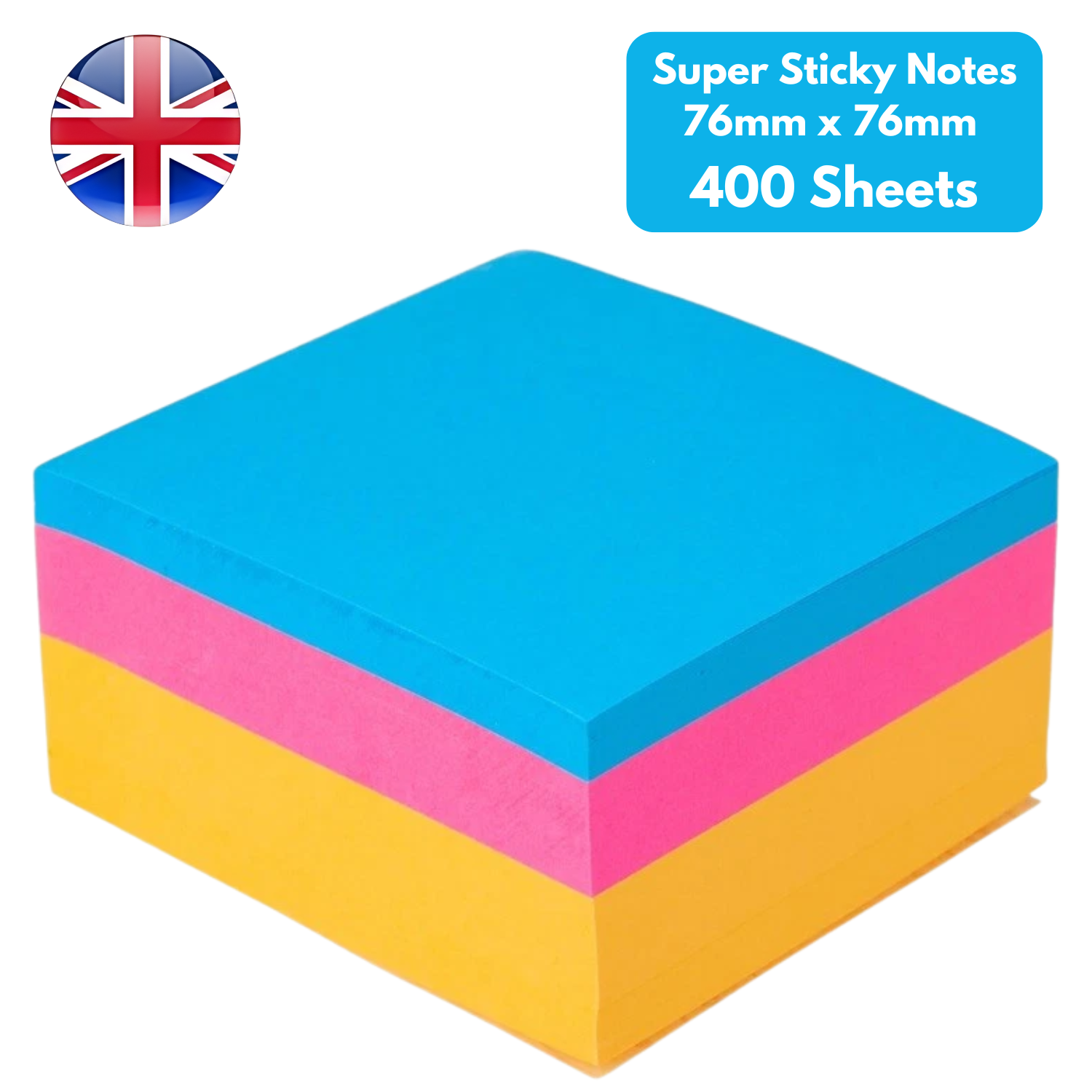 3M Post It Super Sticky Notes 76mm x 76mm 400 Sheets Colourful Office Notes