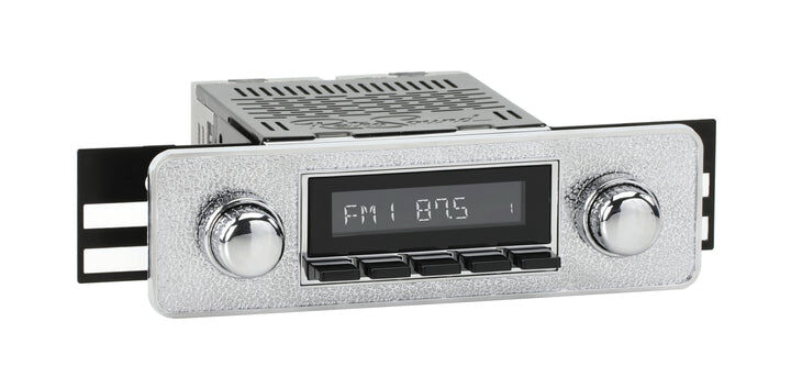 The RetroSound® RetroRadio® is our most versatile Radio Face, designed after traditional 2-shaft radios with classic push-buttons found in thousands of makes & models from the 40s-80s. Combined with hundreds of faceplates, bezels, and replica knobs, the RetroRadio is the most authentic solution for adding modern audio to classic cars and trucks. The RetroRadio is available in black or chrome, with the choice of black, chrome, or ivory push-buttons.