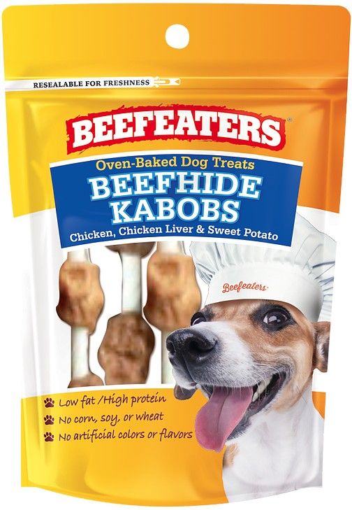 Beefeaters Oven Baked Beefhide Kabobs is a unique, chewy treat has four distinct flavors including real chicken breast, chicken liver & sweet potato (super food) on pure beefhide twist. This chew contains real chicken as the first ingredient and grain free with no artificial flavors or colors. Give your furry friend the taste they crave.