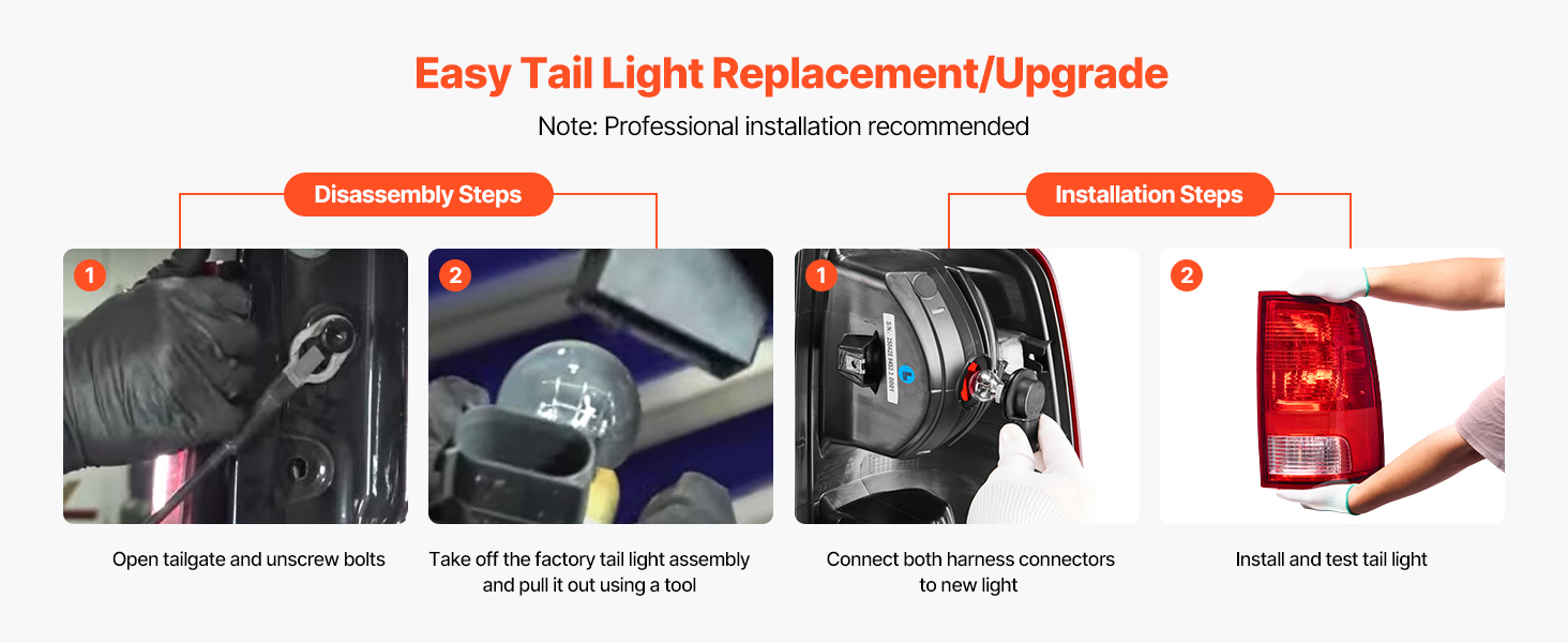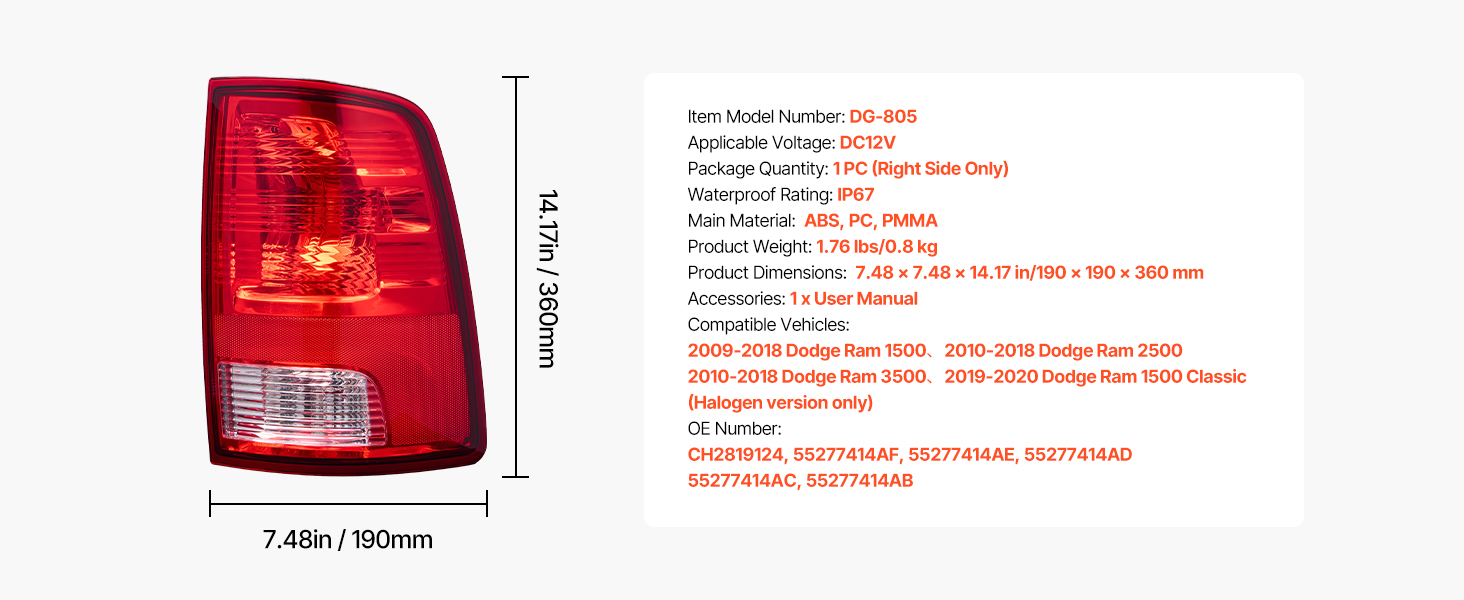 VEVOR right passenger side tail light assembly is compatible with multiple vehicle models, as shown in the picture. Please confirm fitment before purchasing. Halogen bulbs are included, easy to install. Improve visibility, enhance driving safety, and vehicle’s appearance. (Only for halogen version.)
