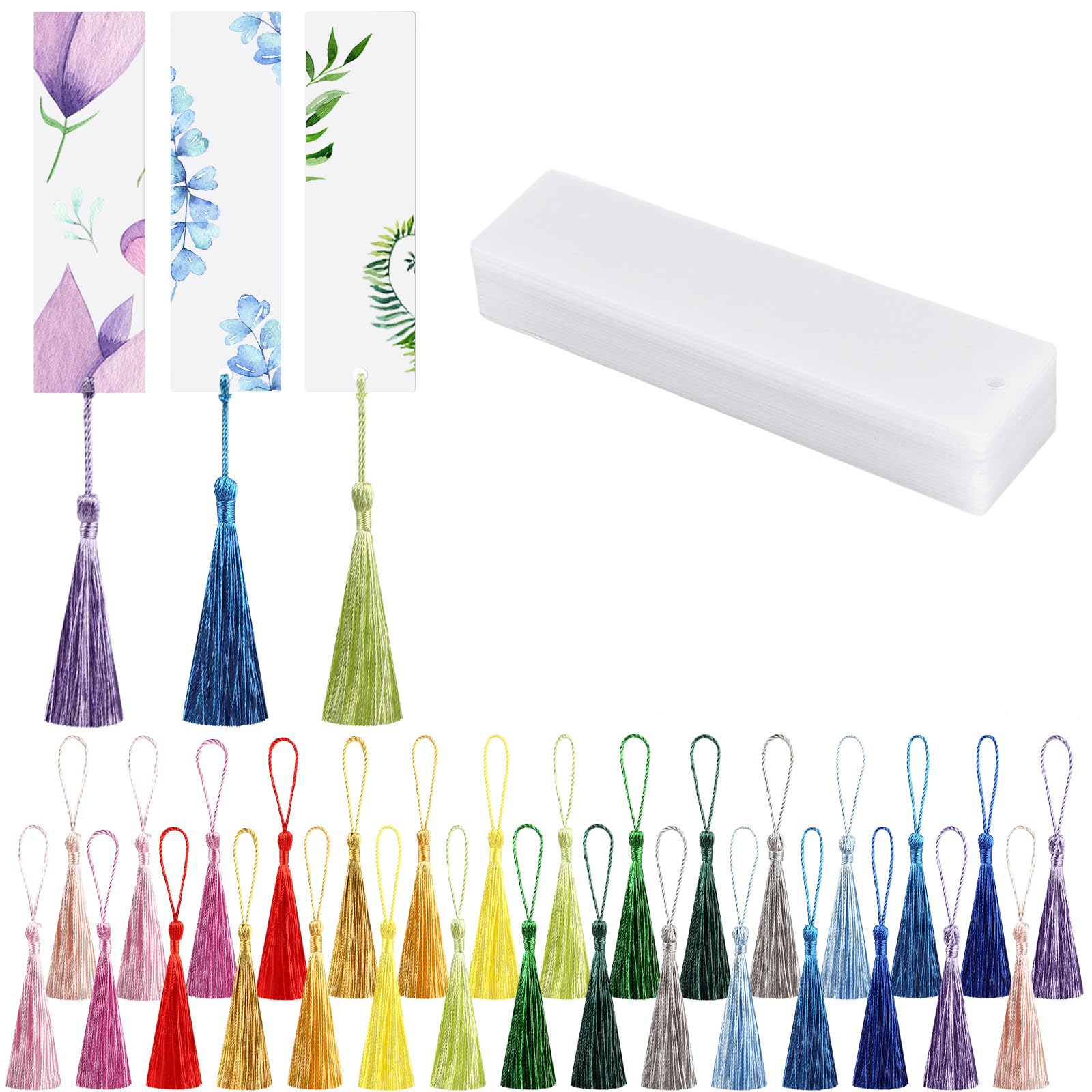 Blank Bookmark Set with 30 Pieces Colorful Tassels for DIY Craft Classroom Office Home Projects
