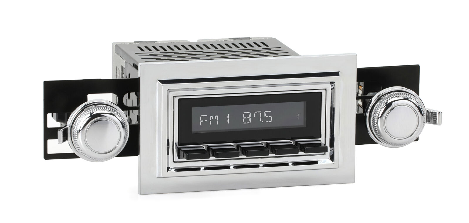 The RetroSound® RetroRadio® is our most versatile Radio Face, designed after traditional 2-shaft radios with classic push-buttons found in thousands of makes & models from the 40s-80s. Combined with hundreds of faceplates, bezels, and replica knobs, the RetroRadio is the most authentic solution for adding modern audio to classic cars and trucks. The RetroRadio is available in black or chrome, with the choice of black, chrome, or ivory push-buttons.