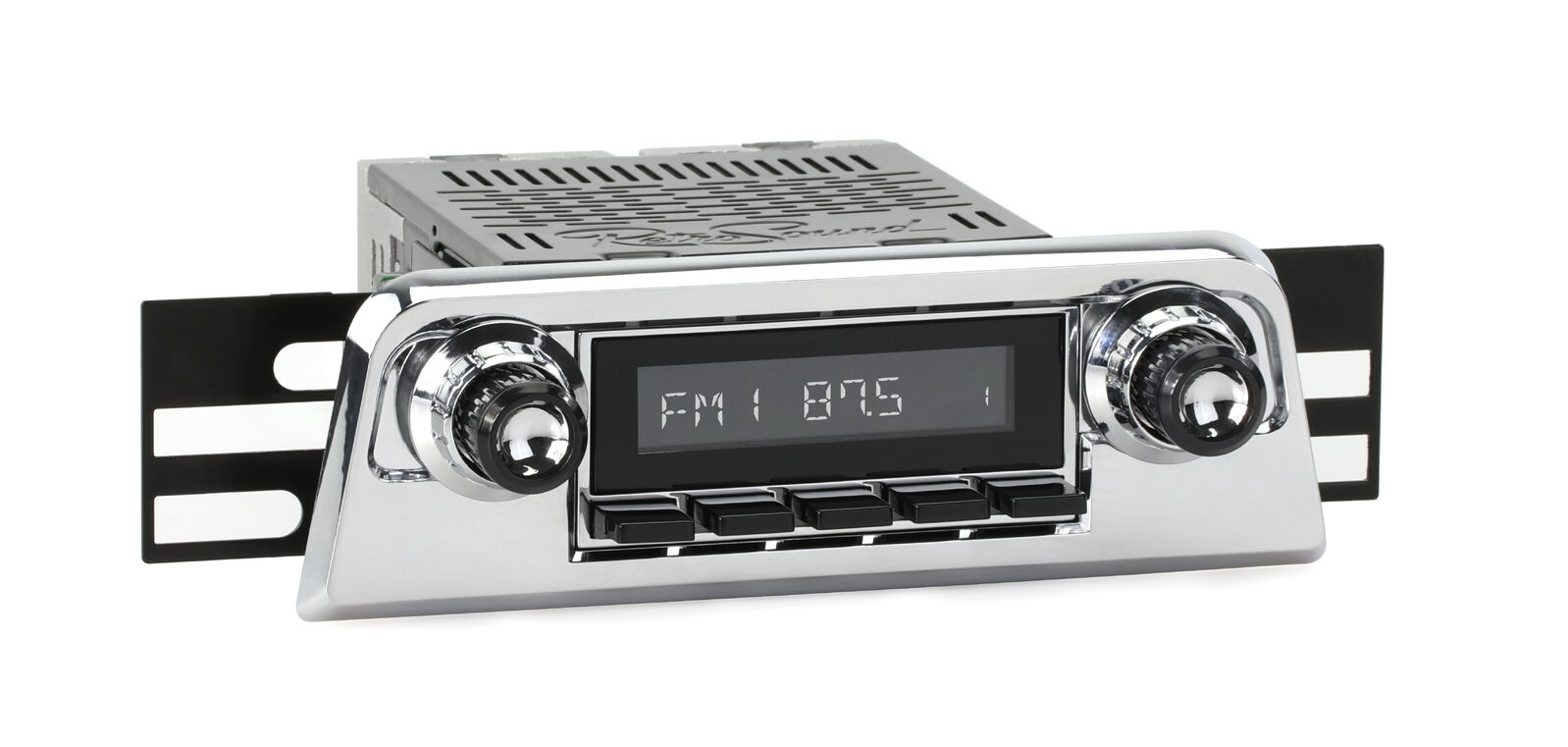 The RetroSound® RetroRadio® is our most versatile Radio Face, designed after traditional 2-shaft radios with classic push-buttons found in thousands of makes & models from the 40s-80s. Combined with hundreds of faceplates, bezels, and replica knobs, the RetroRadio is the most authentic solution for adding modern audio to classic cars and trucks. The RetroRadio is available in black or chrome, with the choice of black, chrome, or ivory push-buttons.