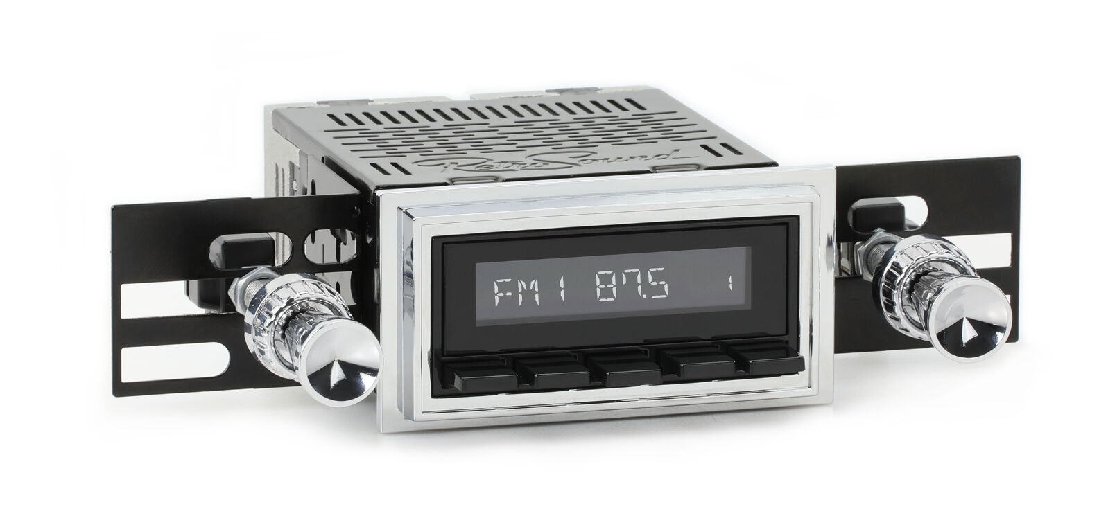 The RetroSound® RetroRadio® is our most versatile Radio Face, designed after traditional 2-shaft radios with classic push-buttons found in thousands of makes & models from the 40s-80s. Combined with hundreds of faceplates, bezels, and replica knobs, the RetroRadio is the most authentic solution for adding modern audio to classic cars and trucks. The RetroRadio is available in black or chrome, with the choice of black, chrome, or ivory push-buttons.