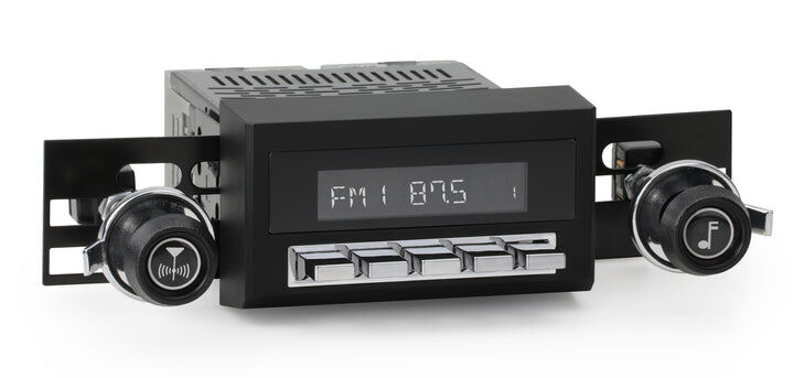 The RetroSound® RetroRadio® is our most versatile Radio Face, designed after traditional 2-shaft radios with classic push-buttons found in thousands of makes & models from the 40s-80s. Combined with hundreds of faceplates, bezels, and replica knobs, the RetroRadio is the most authentic solution for adding modern audio to classic cars and trucks. The RetroRadio is available in black or chrome, with the choice of black, chrome, or ivory push-buttons.