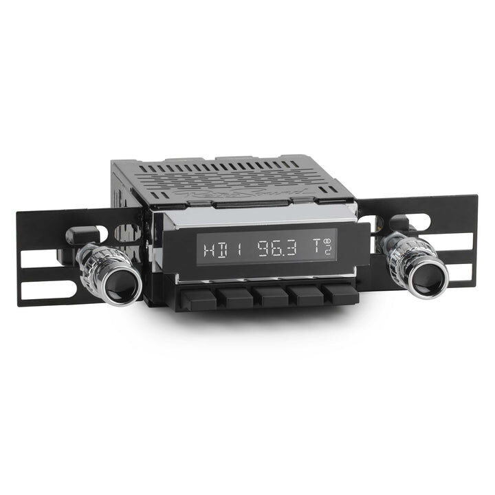 The RetroSound® New York radio is a 1.5 DIN radio for classic GM, Mopar, and Ford vehicles of the 1980s to 2000s that had a 1.5 DIN factory Radio. The sophisticated style of the New York is the perfect complement to the interior of these vehicles with simple, clean lines, chrome trim, and chrome knobs.
