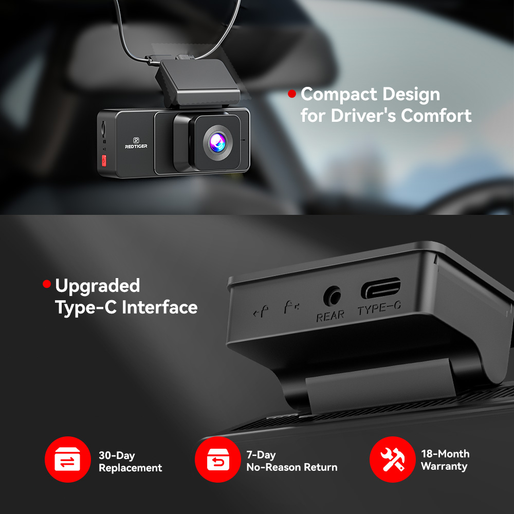 REDTIGER A3 3 Channel Dash Camera 2.5K+1080P+1080P IRCamera With 32GB Card