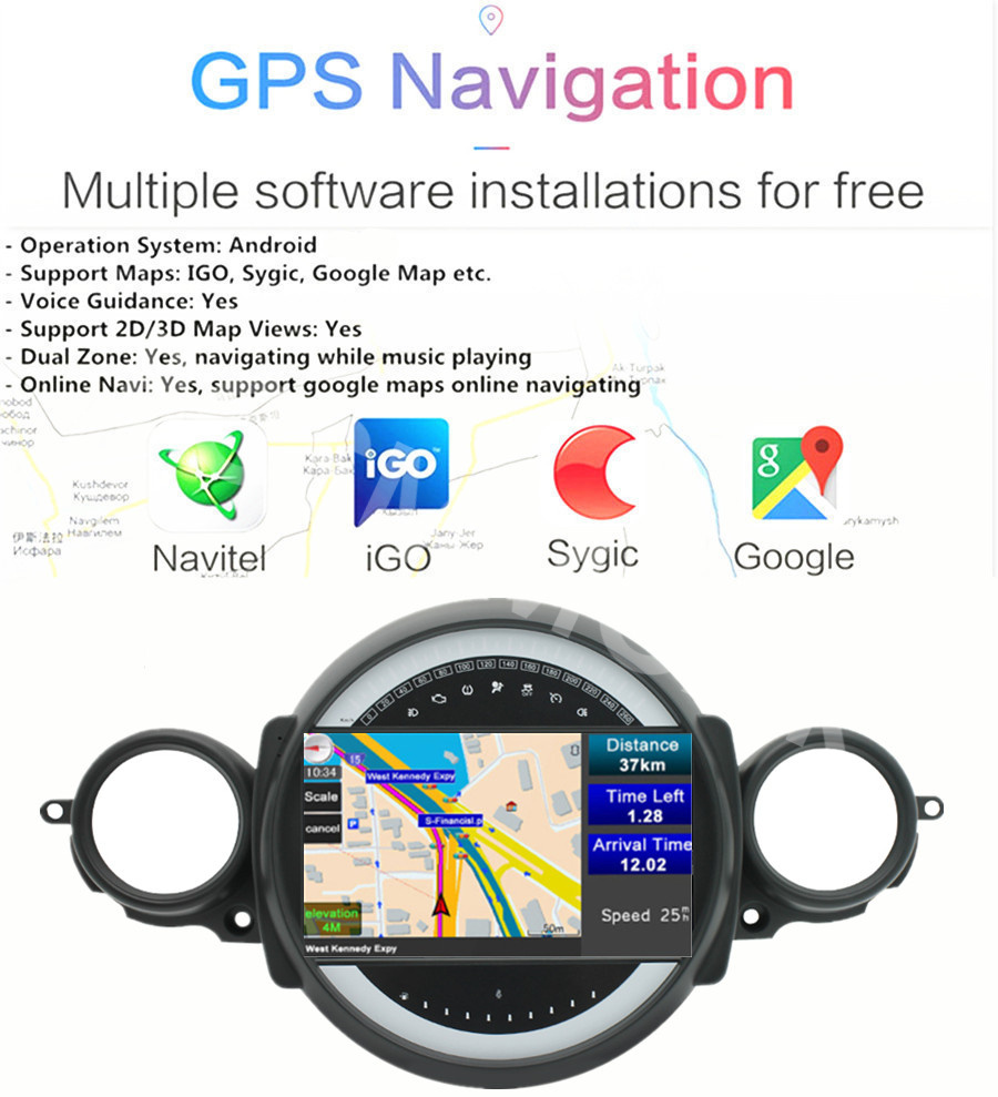 - Support Maps: IGO, Sygic, Google Map etc.