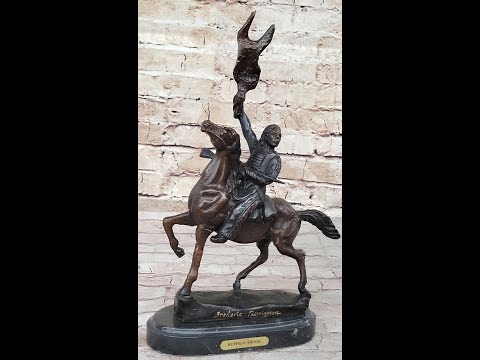 Immerse yourself in the rich legacy of Frederic Remington with "The Buffalo Signal," an extraordinary bronze sculpture that captures the spirit of a Native American warrior atop his majestic horse. This remarkable piece showcases the remarkable craftsmanship and artistic vision of Remington, making it a prized addition to any collection.