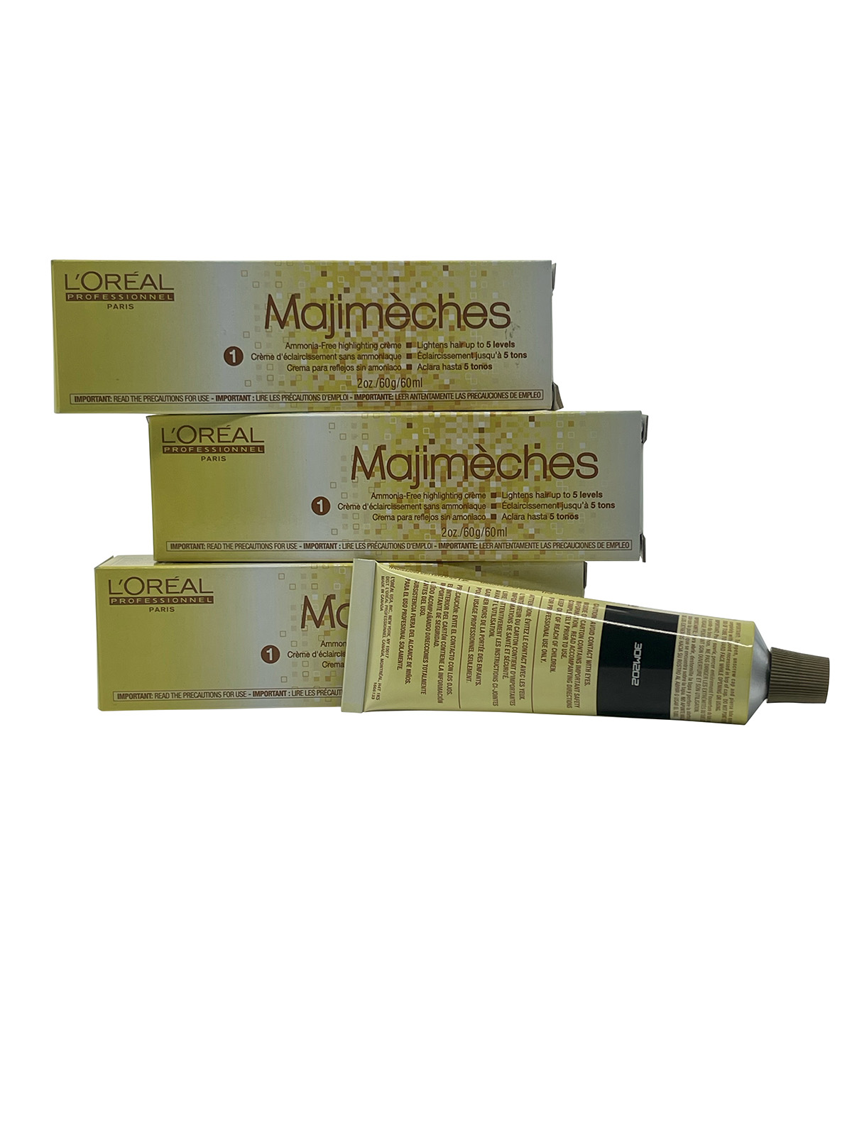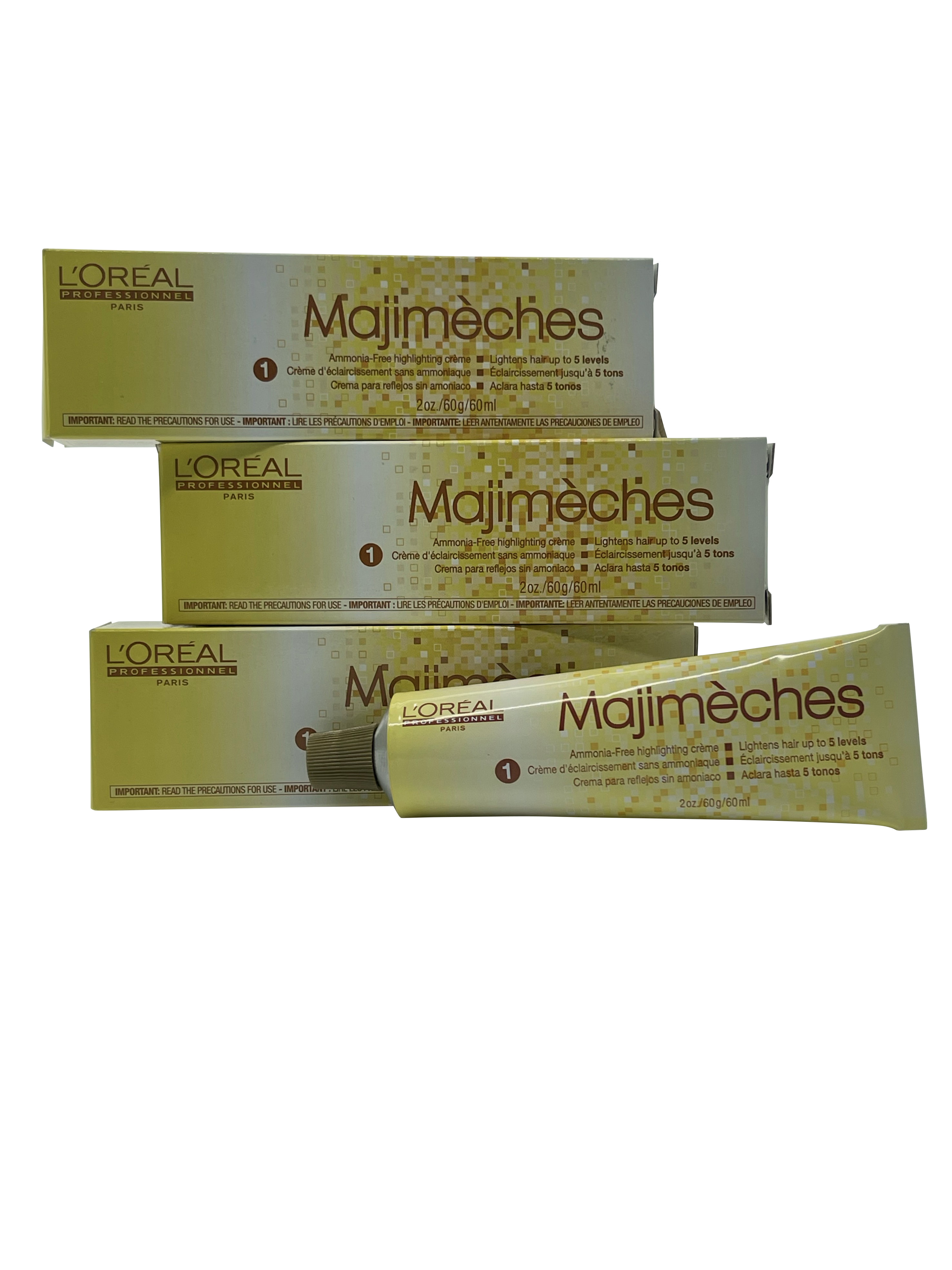 L'Oreal Majimeches #1 Ammonia Free Highlighting Cream is an ammonia free cream perfect for creating golden highlights. Made to be used on all hair types, it leaves your hair full of shine and full of dimension. Color and highlights always look natural and hair is left always feeling healthy. How to use: Please follow the instructions on the box for exact desired effect. 3 boxes offered at this price
