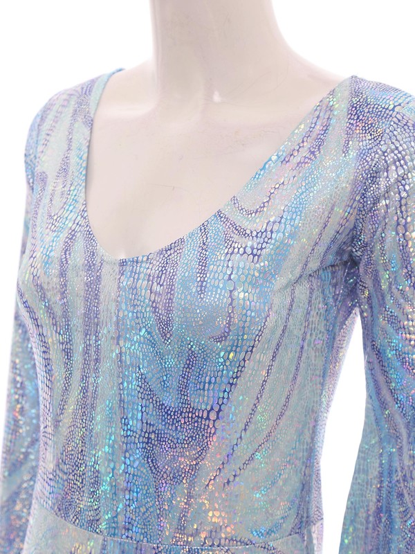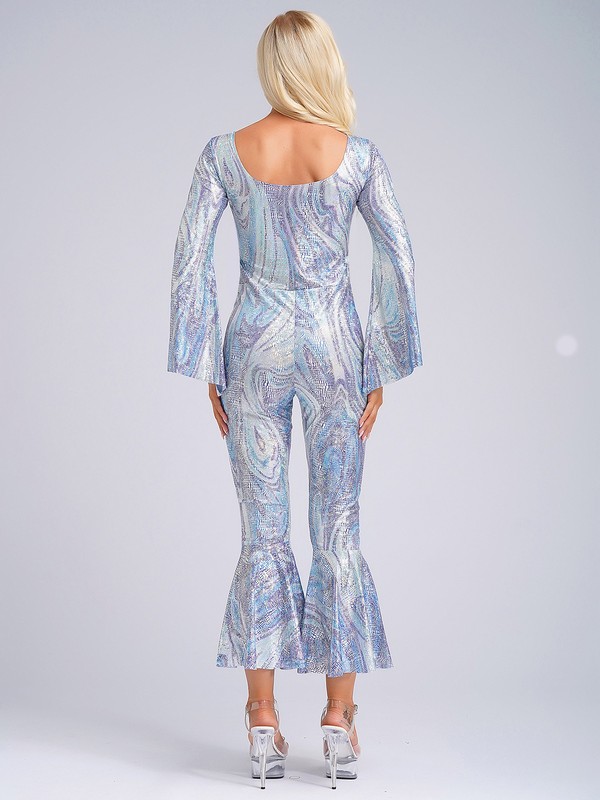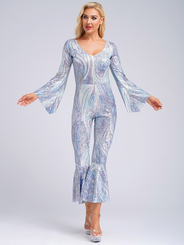 A 1970s disco dance costume for women, glittering fabric with shiny sheen makes you more eye-catching.
