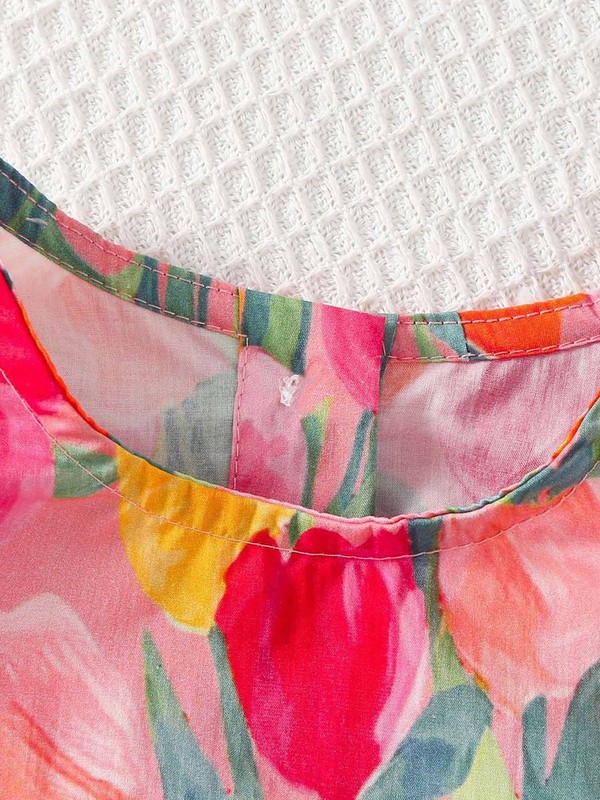 Floral printed pattern on the romper gives it a fresh and sweet look, making the baby girl stand out and look fashionable.