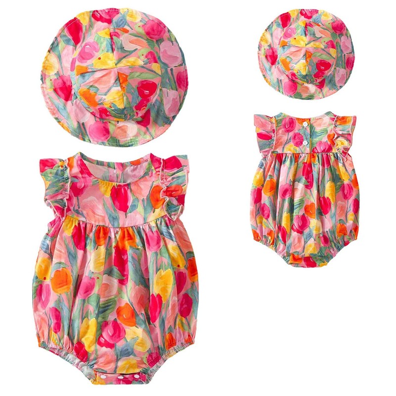 Baby Girl Jumpsuit Toddler Summer Outfits Beach Romper With Hat Princess Set
