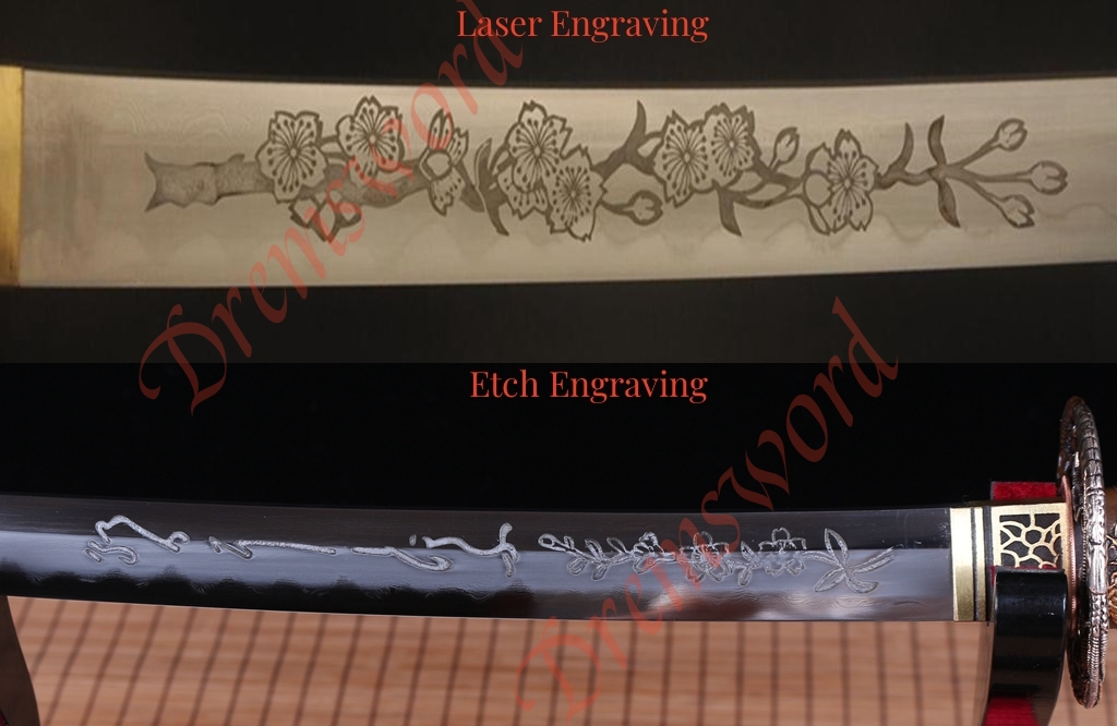 other patterns on the blade.Laser engrving cost $15,Etch engraving costs $30