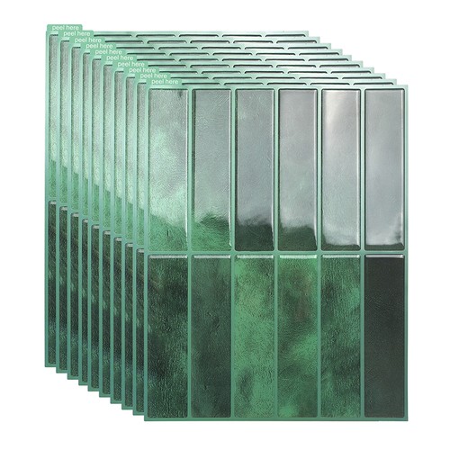 Green Peel and Stick on Self Adhesive Wall Tiles for Kitchen Bathroom,Rectangle Subway 10-Sheet, (11.4"x 9")