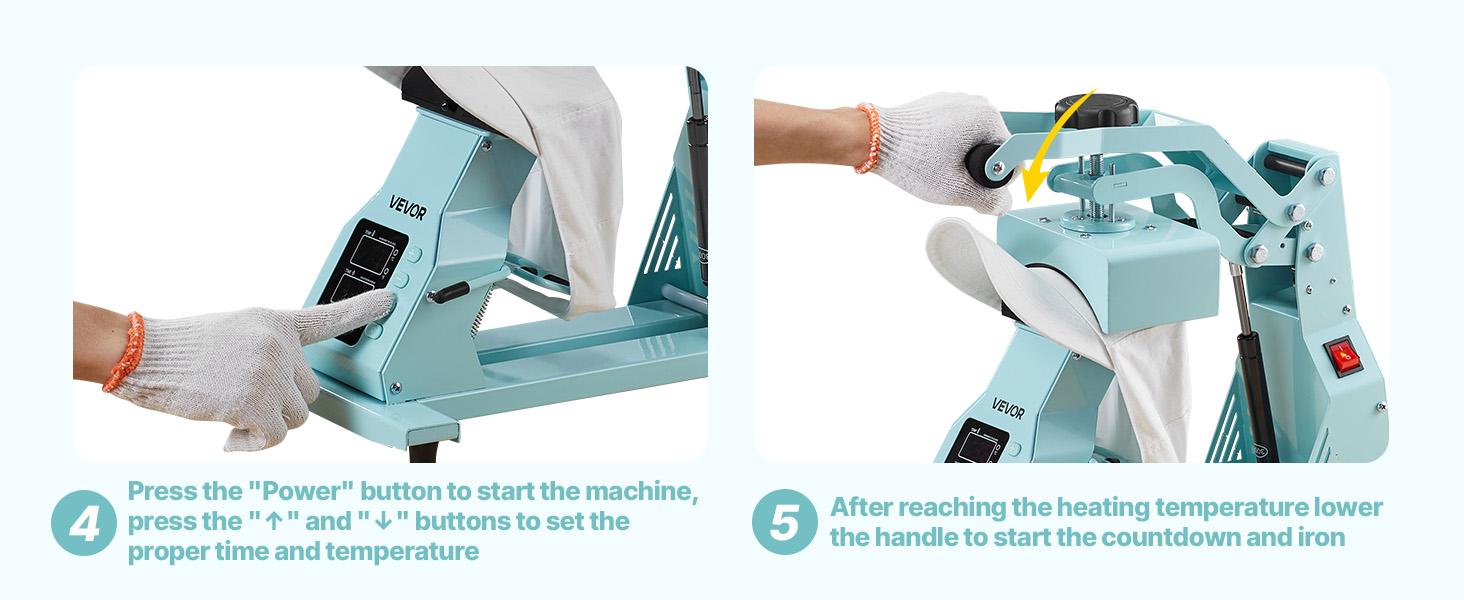 - Easy Operation: The heat press for hats features an ergonomic long-arm handle for smooth pressing. The pressure knob adjusts to material thickness. Flip design with auto shut-off adds security. Engineered to exceed industry standards for easy use