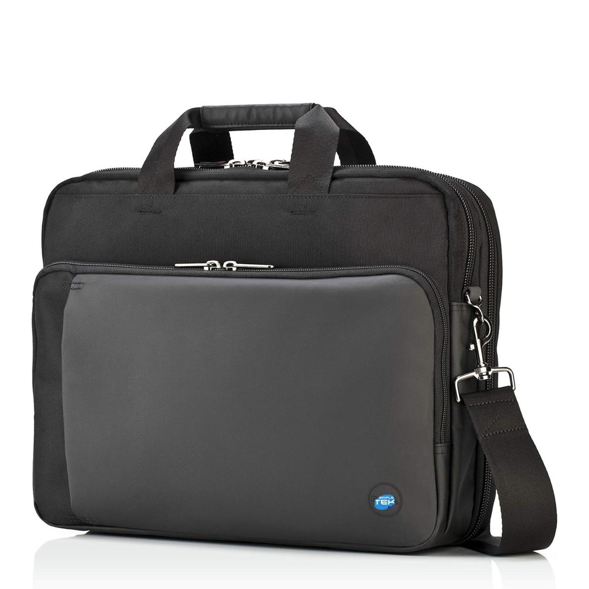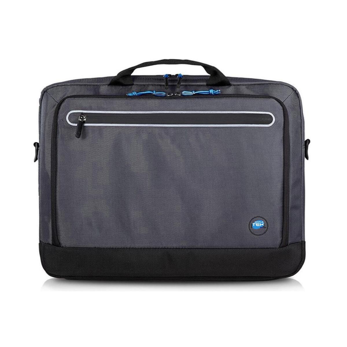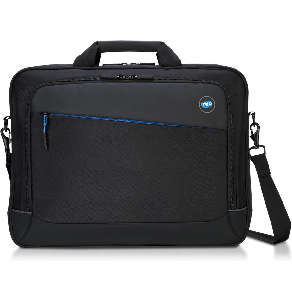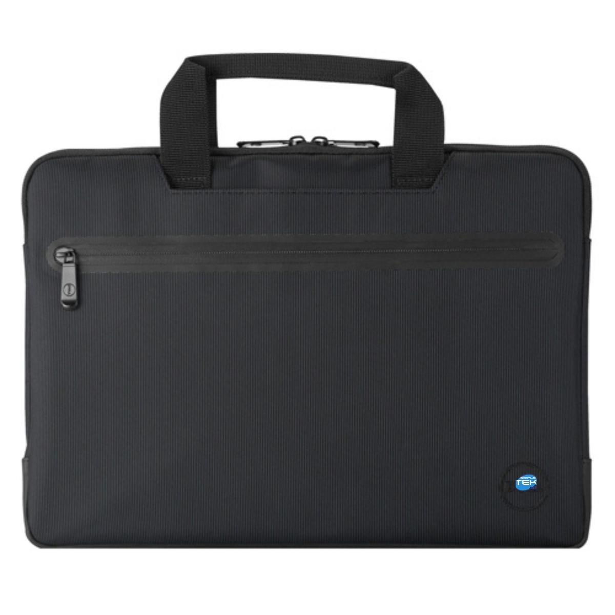 Sophisticated professional style for business users. The business-oriented design offers a protective, well-padded laptop compartment, ergonomic comfort and numerous organizational features. The accessory storage area organizes business cards, pens, credit cards and other items and features a separate mesh compartment. A separate and divided section allows you to keep files and documents in order. The two top pockets give you quick access to items like your phone or keys, while the large front zippered pocket lets you store your passport and other travel documents. Padded handles and an ergonomic shoulder strap allow for comfortable carrying, while sturdy hardware and ergonomic hinges add comfort and reliability. A discreet luggage strap makes it easy to attach to rolling luggage. Water-resistant fabric further protects contents. Fits Dellâ„¢ laptops up to 35.6 cm (14").