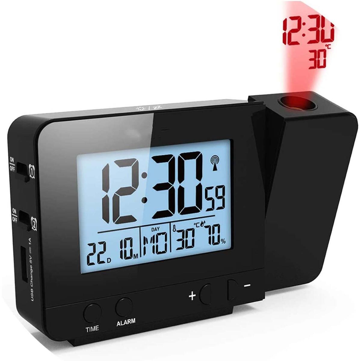 This alarm clock offers wall or ceiling projection, temperature, humidity display, dual alarm with snooze function, auto brightness and night mode.