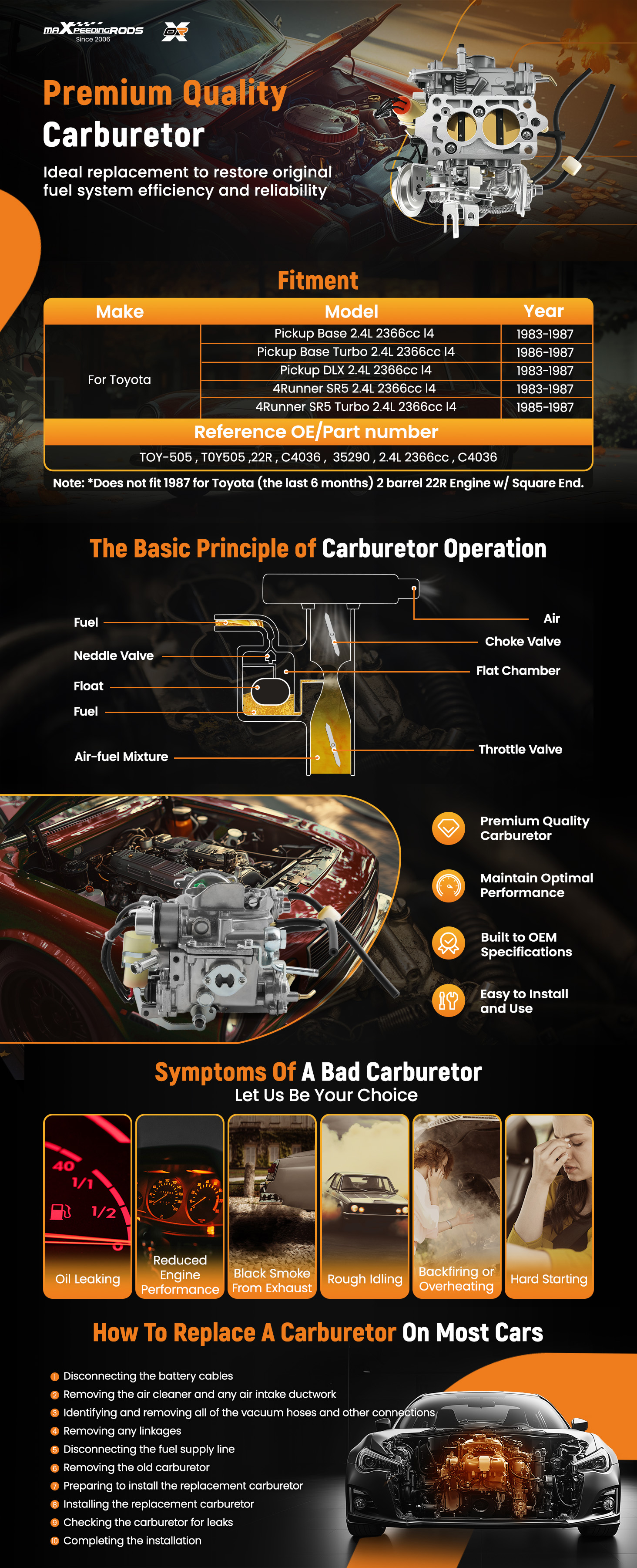 Carburetor Carb for Toyota 22R Pickup 4Runner 2.4L 2366cc 1983-1987 TOY-505