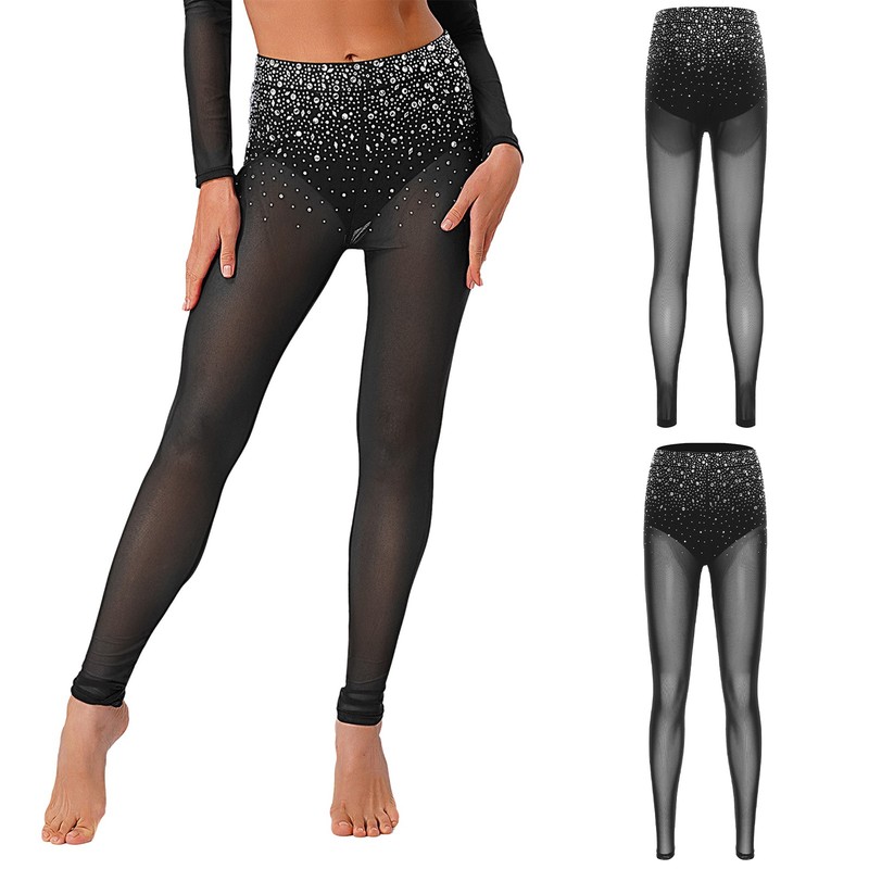 Womens Pants Modern Trousers Gymnastics Dancewear Tights Rhinestone Party Yoga