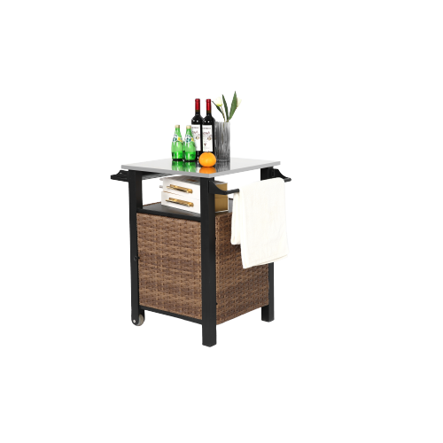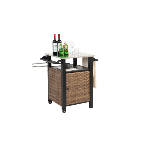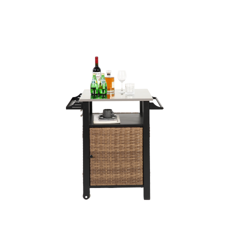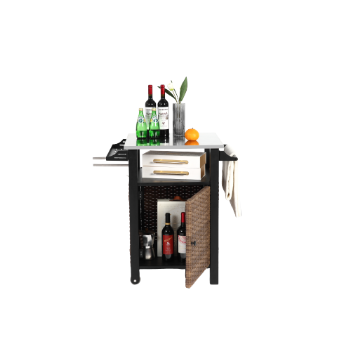 Single door bar cart,Outdoor Kitchen Wicker Island Rolling Cart&Storage Cabinet