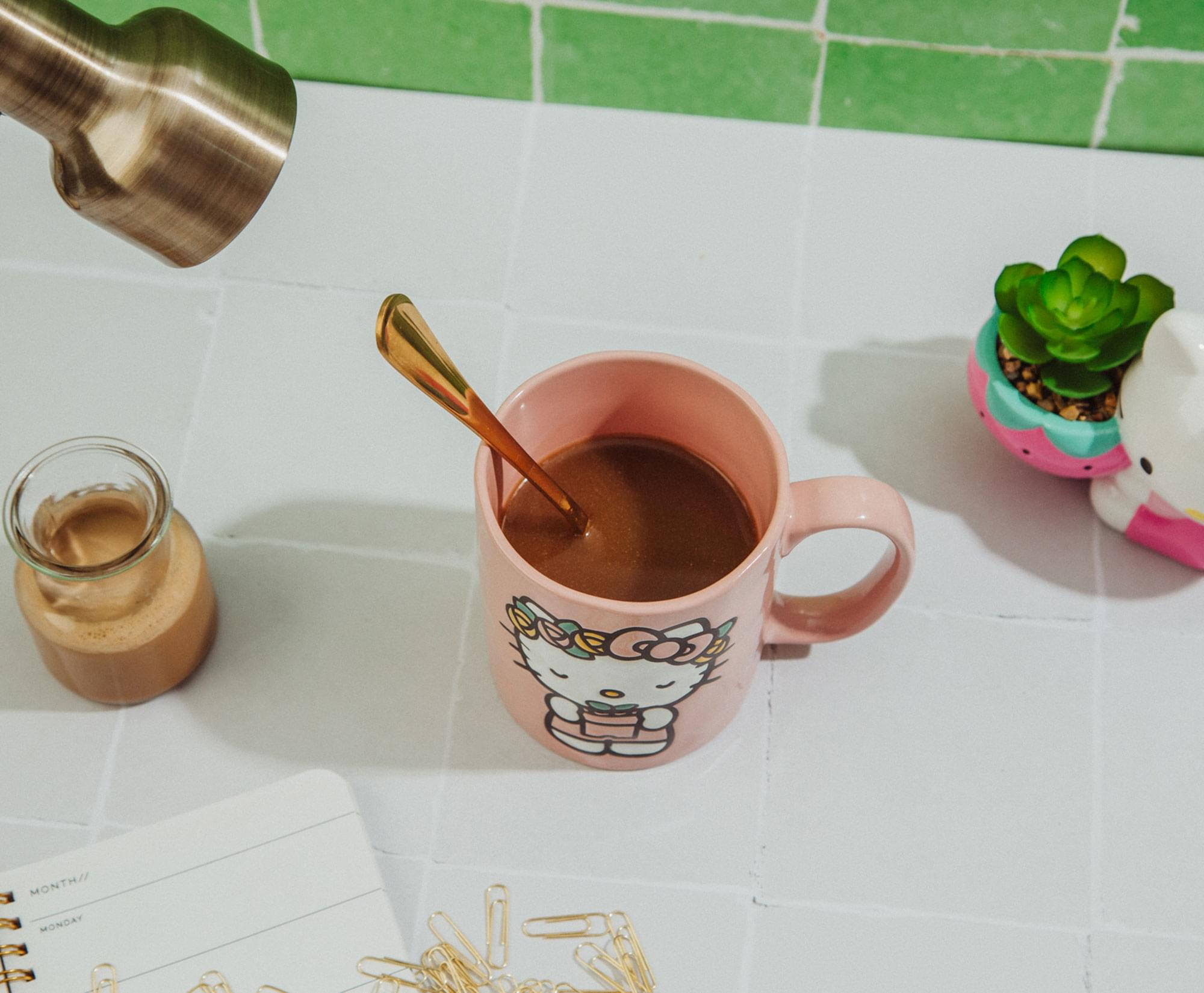 Kick-start your day with Hello Kitty and her ever-loving passion for nature. You'll be blooming with happiness when you enjoy a fresh brew out of this exclusive pottery mug.