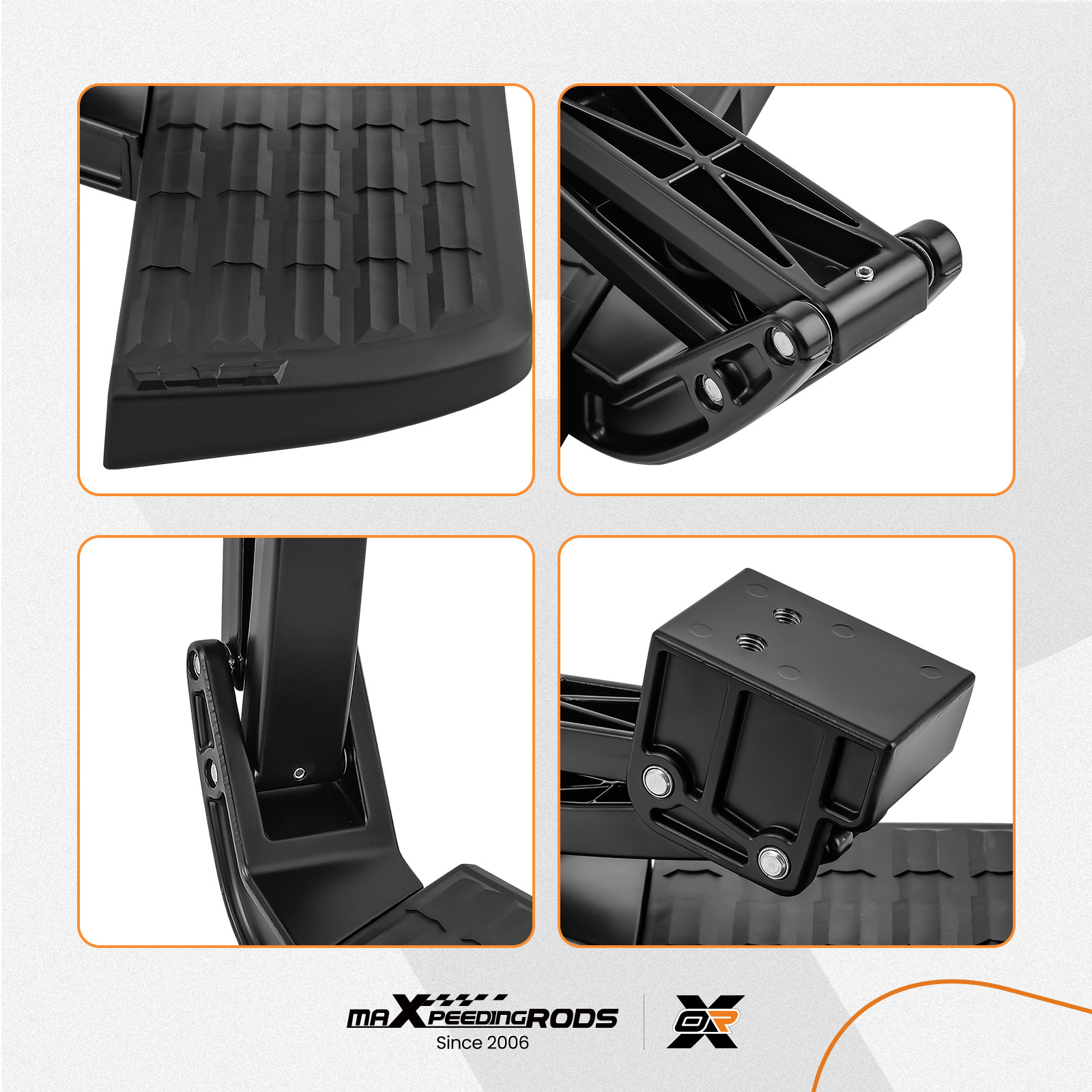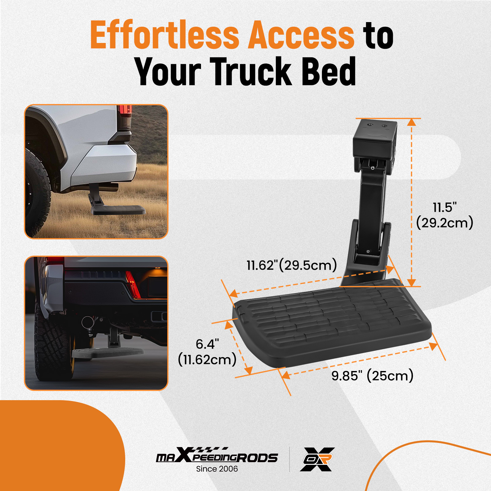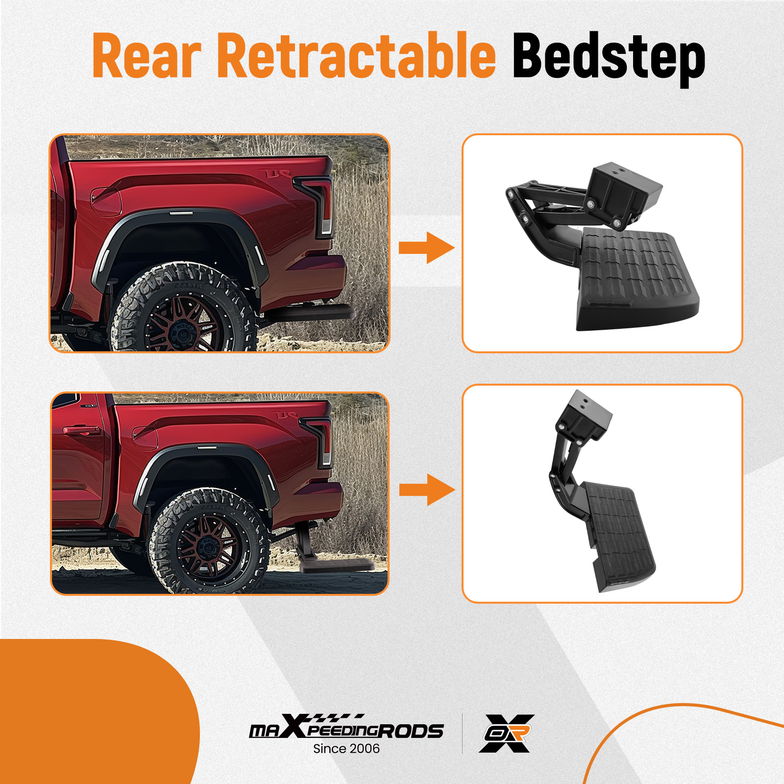 3. This easy-to-use, flip-down step mounts to the frame and stores under the rear bumper when not is use.