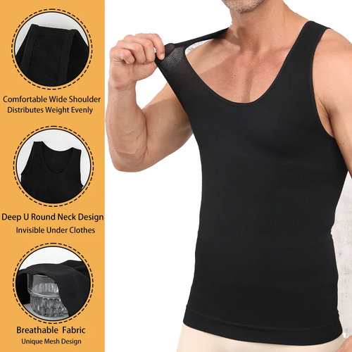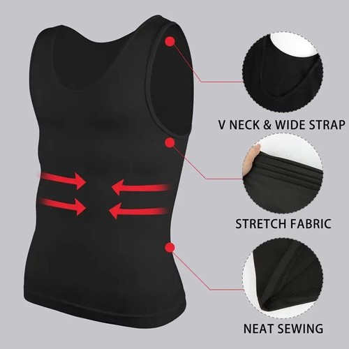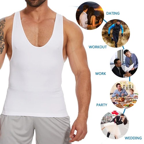 Mens Compression Shirt Tummy Control Vest Tank Top Slimming Stretch Undershirts