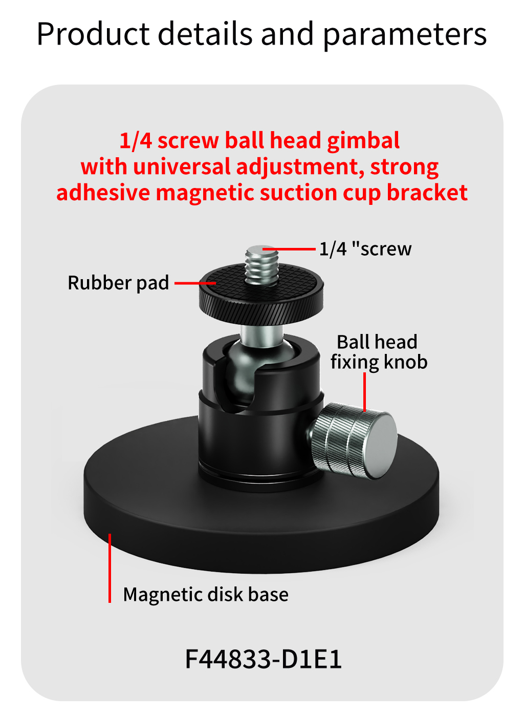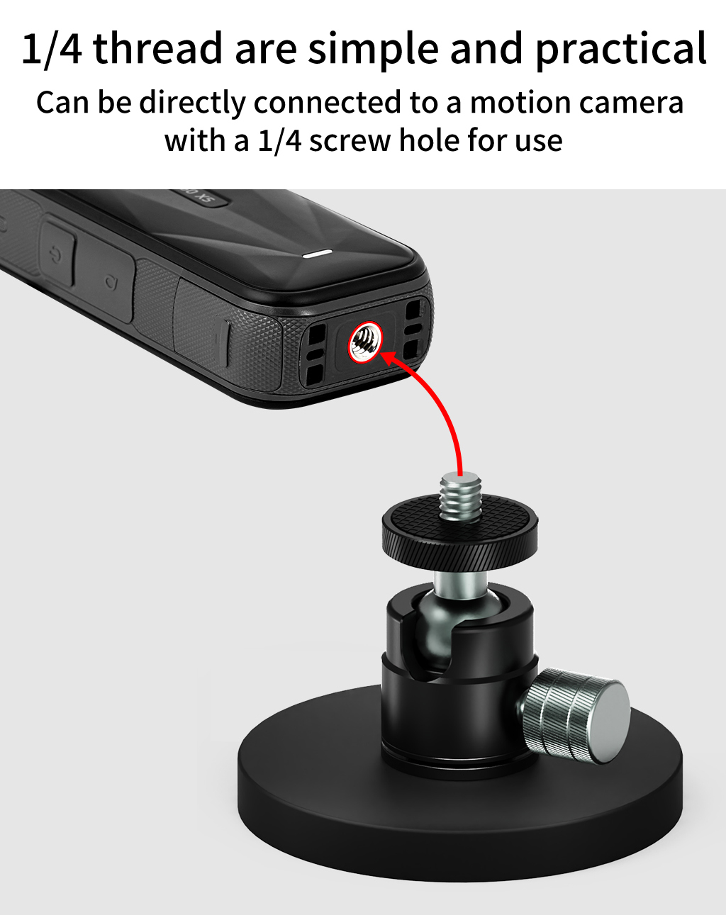 1/4 Ball Head Snail Gimbal Magnetic Suction Bracket Base Action Camera Holder for GOPRO13/GOPRO/DJI Osmo Action4/Insta360 X5/X4/3 And Other Equipment Accessories