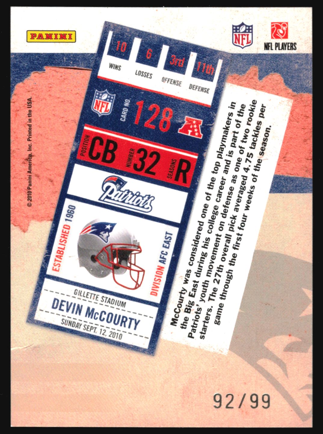 | 2010 Panini Playoff Contenders Ticket DEVIN MCCOURTY Rookie /99 #128 | ||||||||||||||||||||||