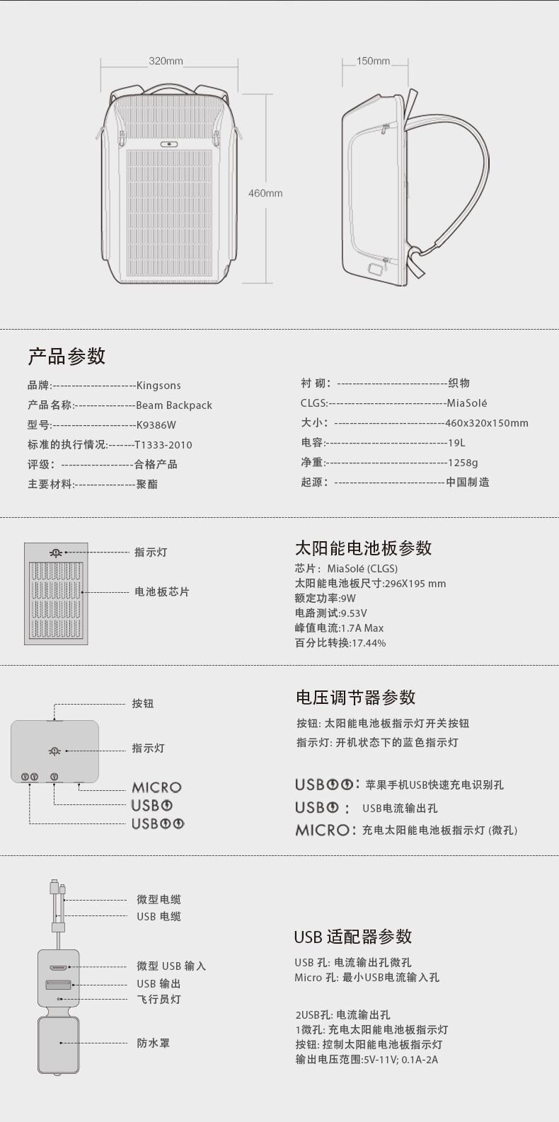 Solar backpacks do not include battery storage (such as power banks). Buyers can equip their own battery storage equipment。