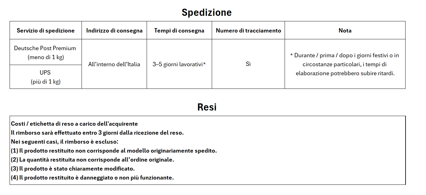 , spedizione possibile all'interno dell'UE a un costo aggiuntivo.