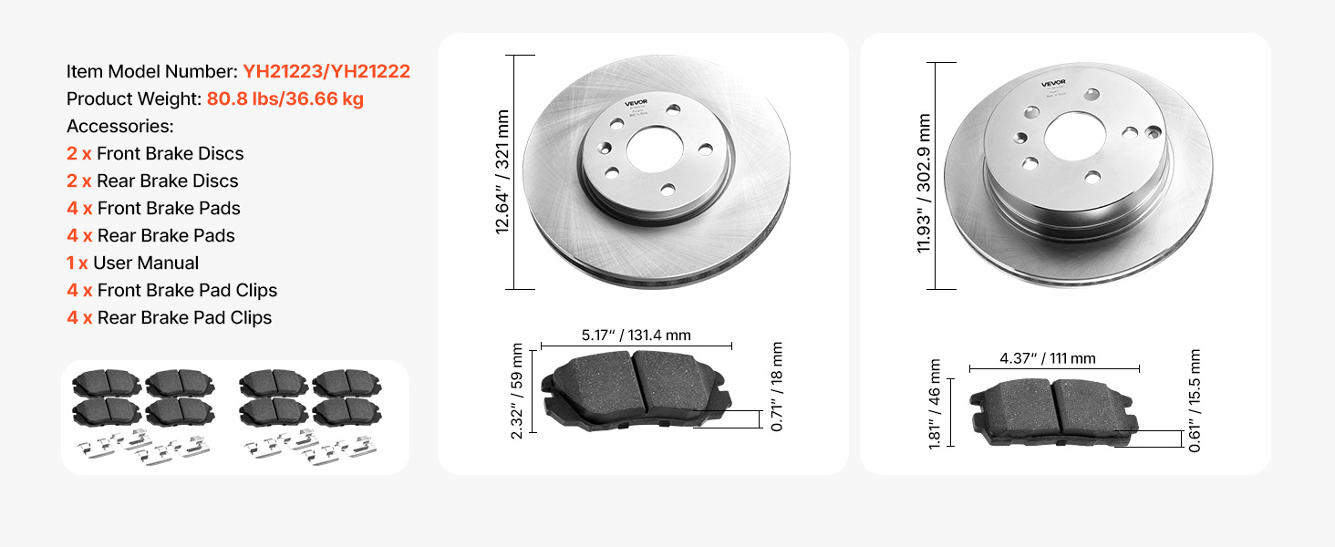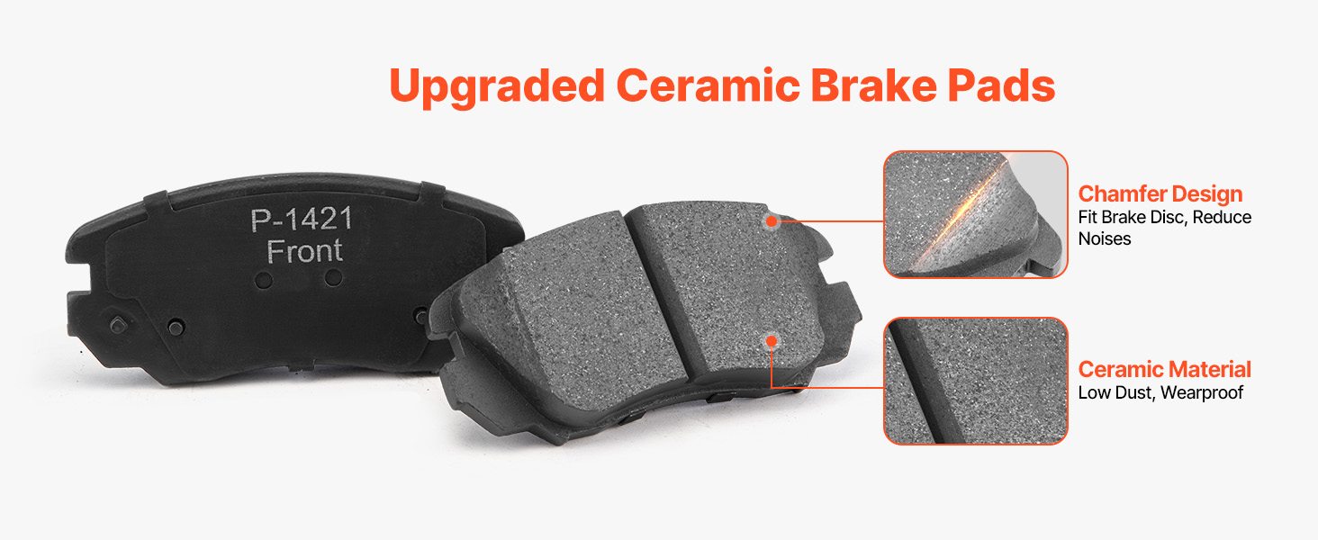 These brake pads are made from high-performance ceramic materials, presenting high-friction, heat-resistant, and wearproof. They keep from thermal decay and wear caused by braking. This special design ensures a tight fit with the brake rotor, minimizing vibration and noise.