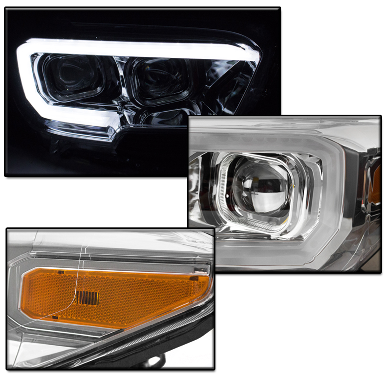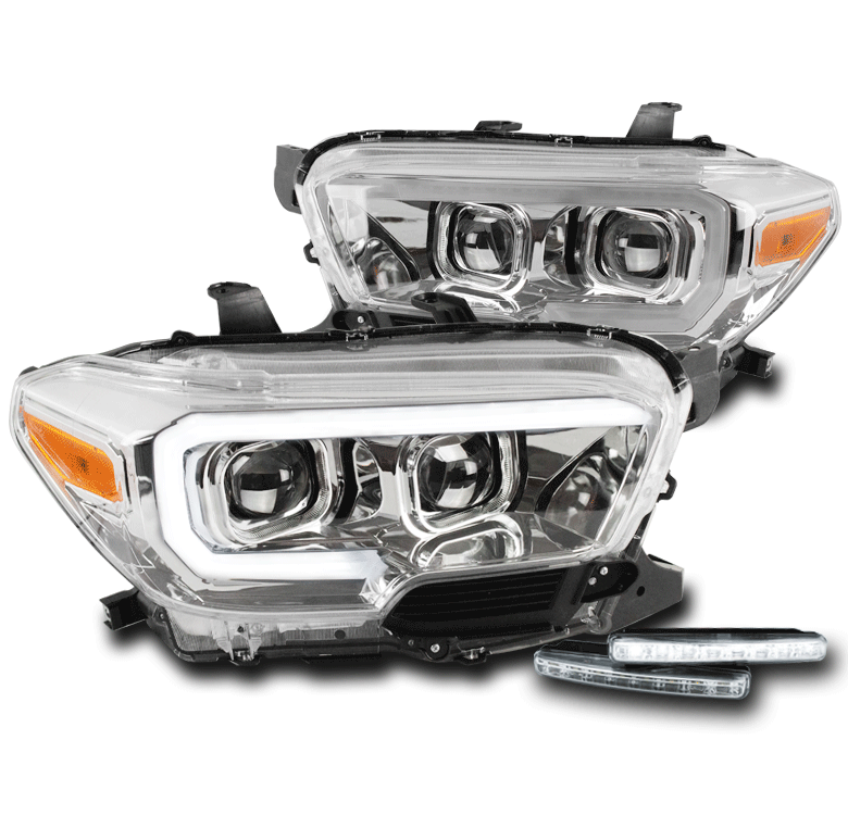 For 2016-2023 Toyota Tacoma TRD | Limited LED Sequential Signal Projector Headlights w/6" White LED DRL - Chrome