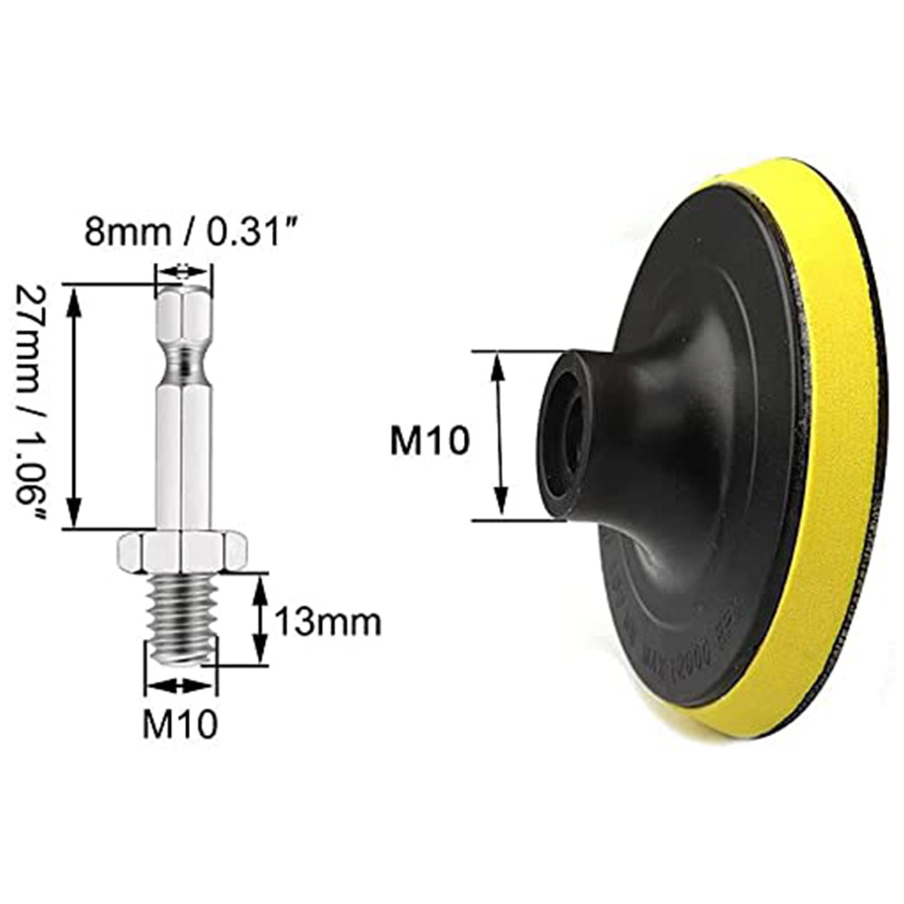 【Package package】 2Pcs 4-inch/100mm Hook and Loop Backing Pads, the inner hole is M10 thread. 2Pcs M10 threaded hexagonal rod adapter, matched with an drill adapter rod, can be used on an electric drill. The hexagonal rod chuck is stronger and will not fall off.