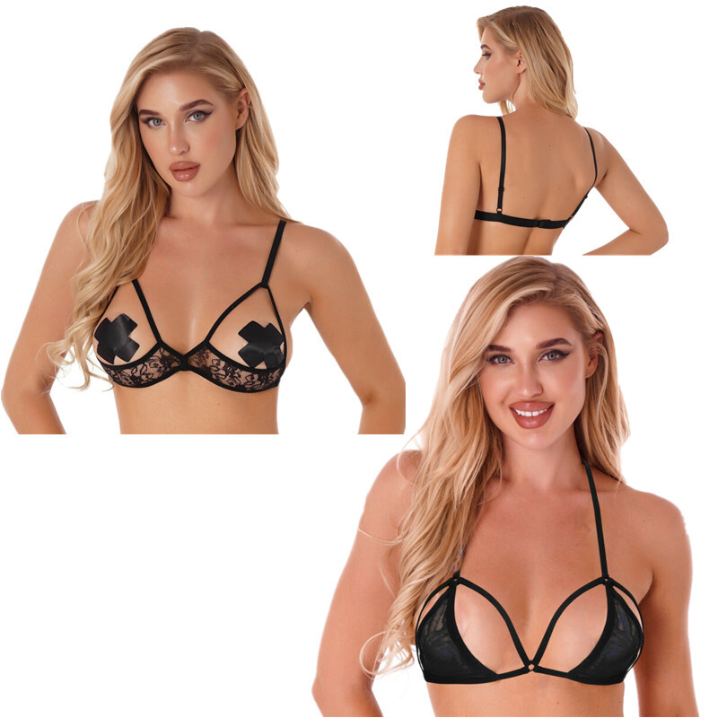 Womens See Through Bra Hollow Out Mesh brassiere Lingerie Tempting Nightwear