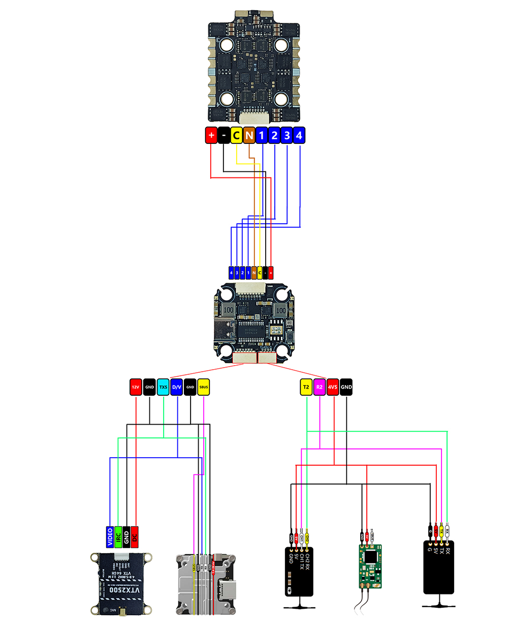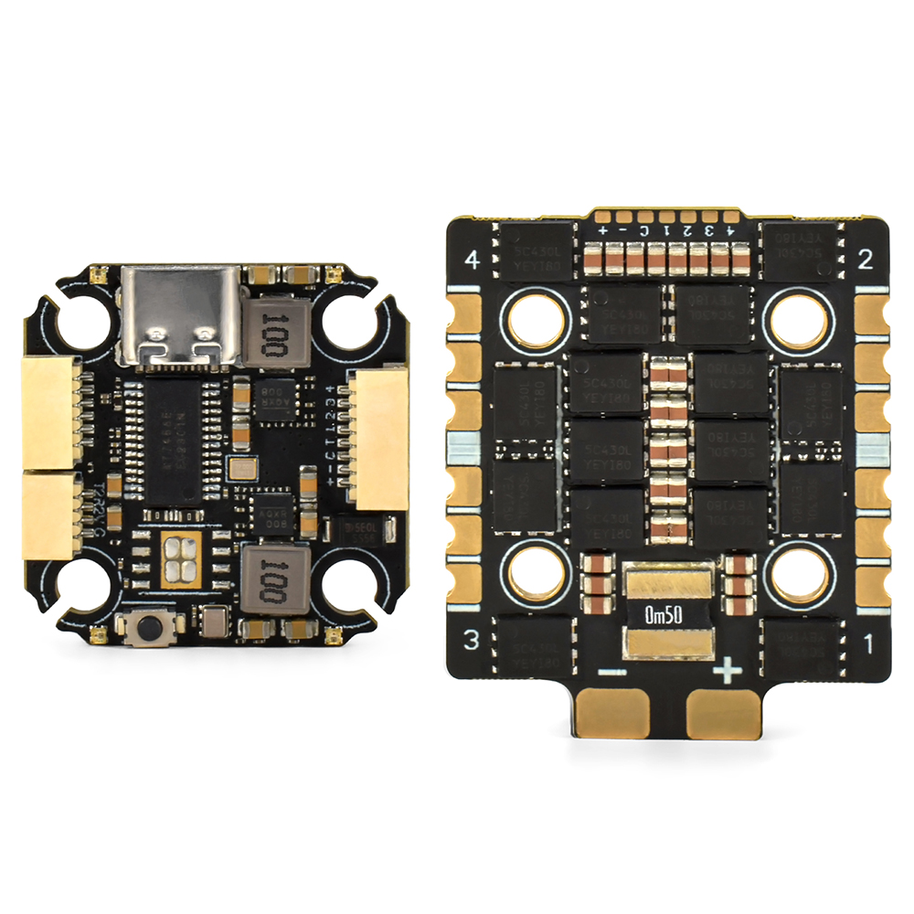 Features: 1. Open-source Betafight Flight Controller. 2. High Configuration: STM32F405RGT6 master, ICM42688 gyroscope, BMP280 barometer. 3. Supports connectivityto all DJl Air Units. 4. lt offers 4 available UART ports, and a dual BECsetup with 5Vand 12V outputs. 5. Built-in OSD module, one-step parameterization. 6. Standard sockets and pads all lead out, convenient for users with different needs. 7. ESC Equipped with a TVS transient suppression diode onboard, it better absorbs surge voltage, providing enhanced protection for the ESC. 8. ESC adopts MOS with high cost performance, which hasgood current resistance and long durability, good stability. 9. High-performance processor can support DSHOT600 protocolat most, and the accelerator is smooth and powerful. 10. F405 FC Support Beataflight firmware, ESC Support BlueJay,bidirectional DSHOT. 11. Supports multiple signal protocols (DSM/SBUS/TBSCrossfire/ELRS). 12. Support multiple open source firmware (ArduPilot, Betaflight. INAV).