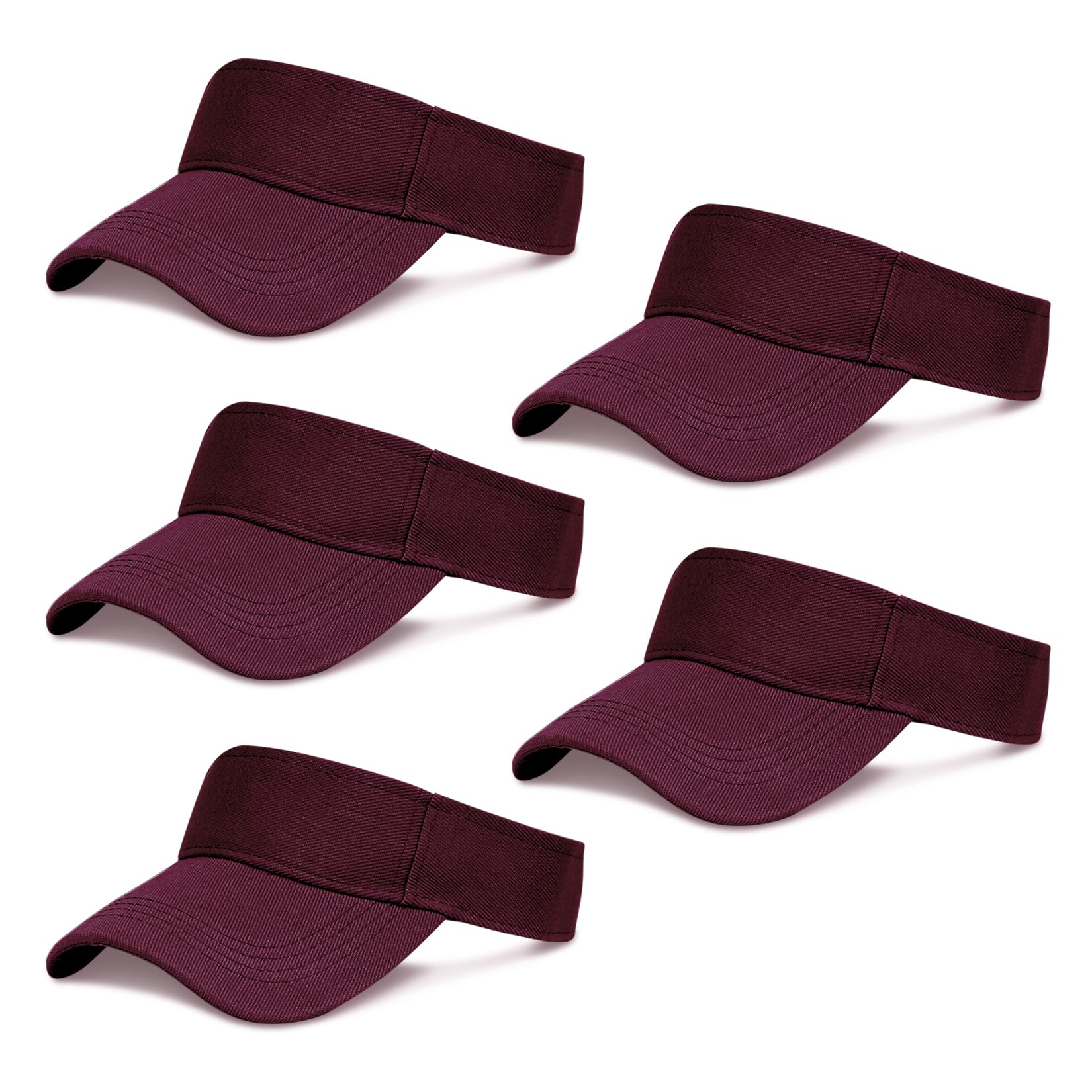 Product Specifications: Quantity: 5 pcs Burgundy Sun Visor Hats Hat Circumference: 54-58 cm / 22-22.8 in. Hat Length: 28 cm / 11 in. Brim Length: 7 cm / 2.8 in. Material: Lightweight Cotton Color: Burgundy Weight: 320 g Widely Used -- Suitable for shopping, park, seaside vacation, beach, picnics, tour, fitness, golf, camping, walking, hiking, jogging, running and other outdoor sports and activities. It can be very good for shading, also can be applied as a photography prop.