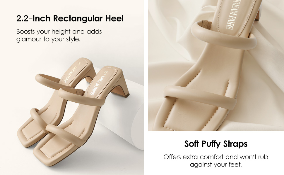 • Soft Materials: Designed with a soft PU upper & lining, these women’s heeled sandals with puffy straps keep your feet comfortable without compromising style.