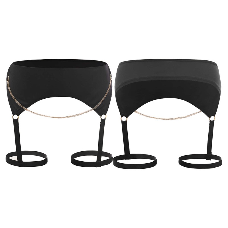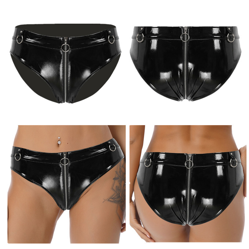 Front with see-through lace design, open butt and minimal coverage.