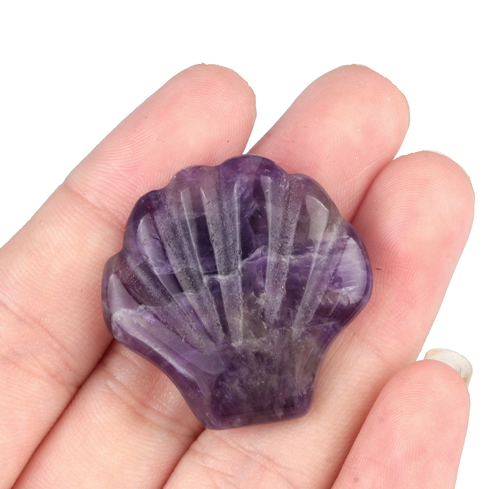 10pcs 1in Natural Amethyst Stone Carved Ocean Shell Ornament Reiki Healing No Hole