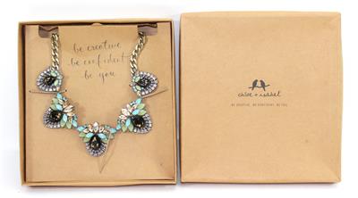 Add a touch of bold elegance to your look with this stunning Chloe + Isabel statement necklace. It is in great pre-owned condition and measures 16.5" in length and has a 2" extension. It is in the original box. The style Trevi has been retired.