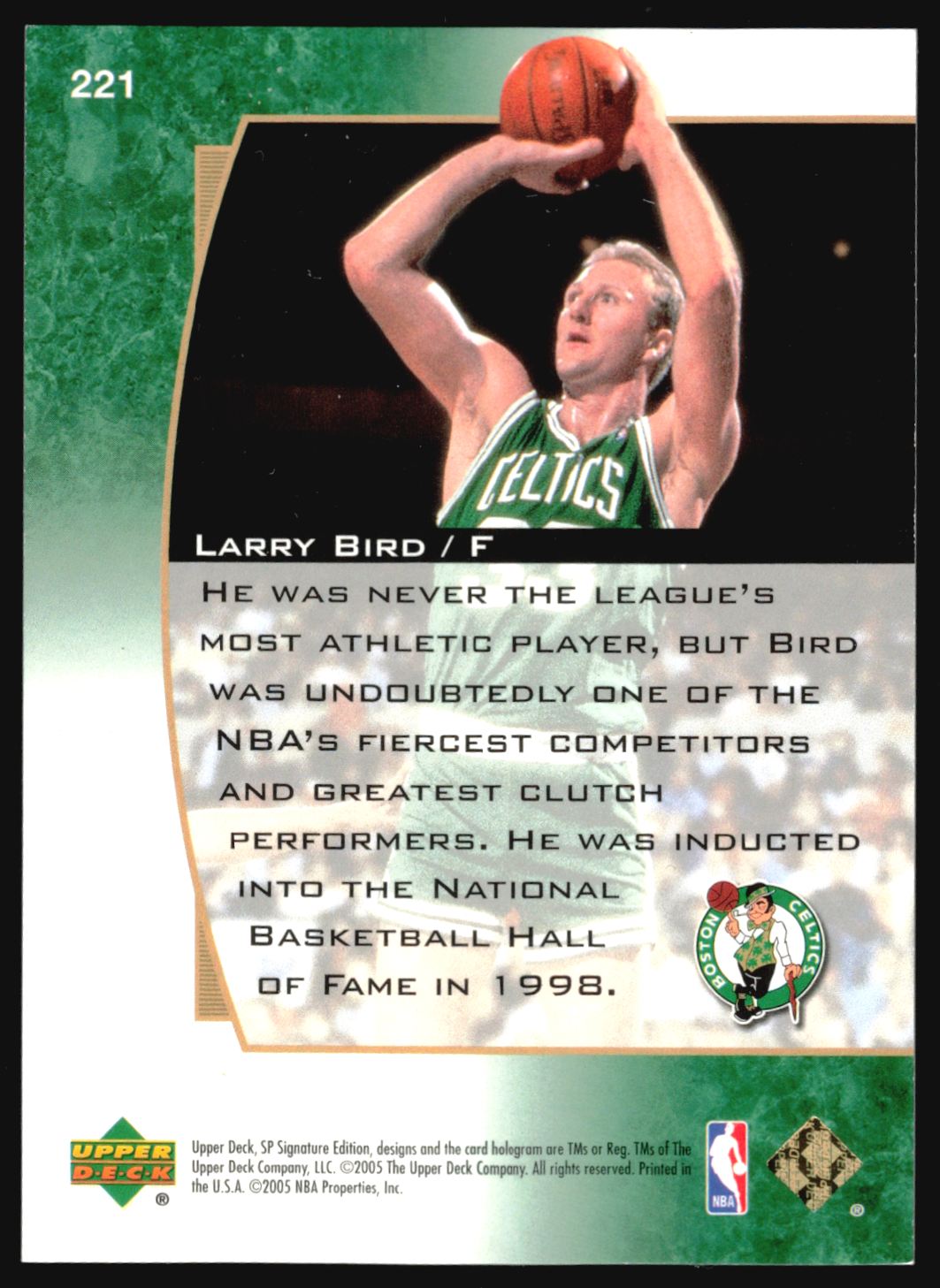 | 2005-06 SP Signature Edition Notable Numbers LARRY BIRD /33 #221 | ||||||||||||||||||||