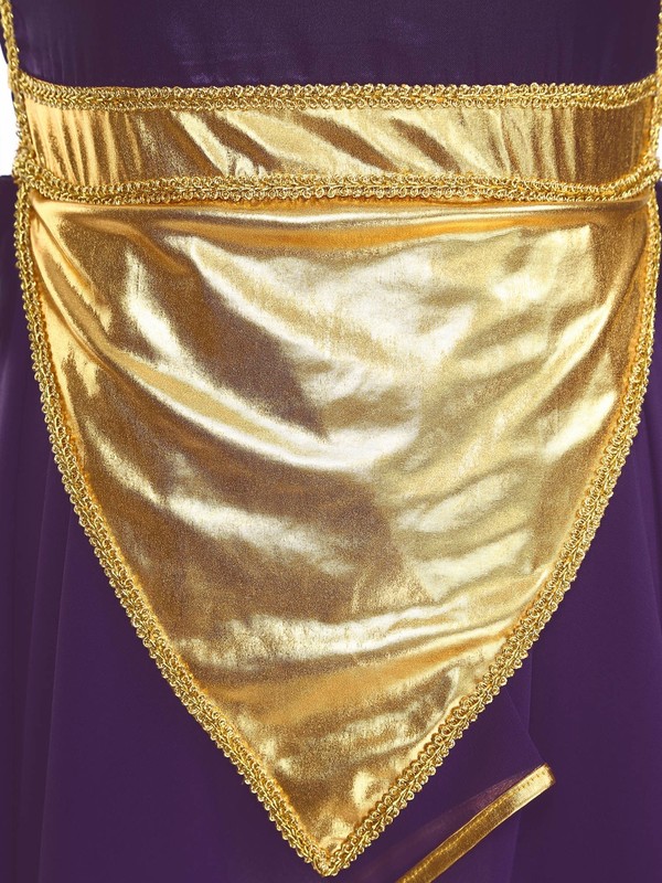 Metallic gloss fabric patchwork design at the neckline and the waist makes it look like a V-neck and highlights the waistline.
