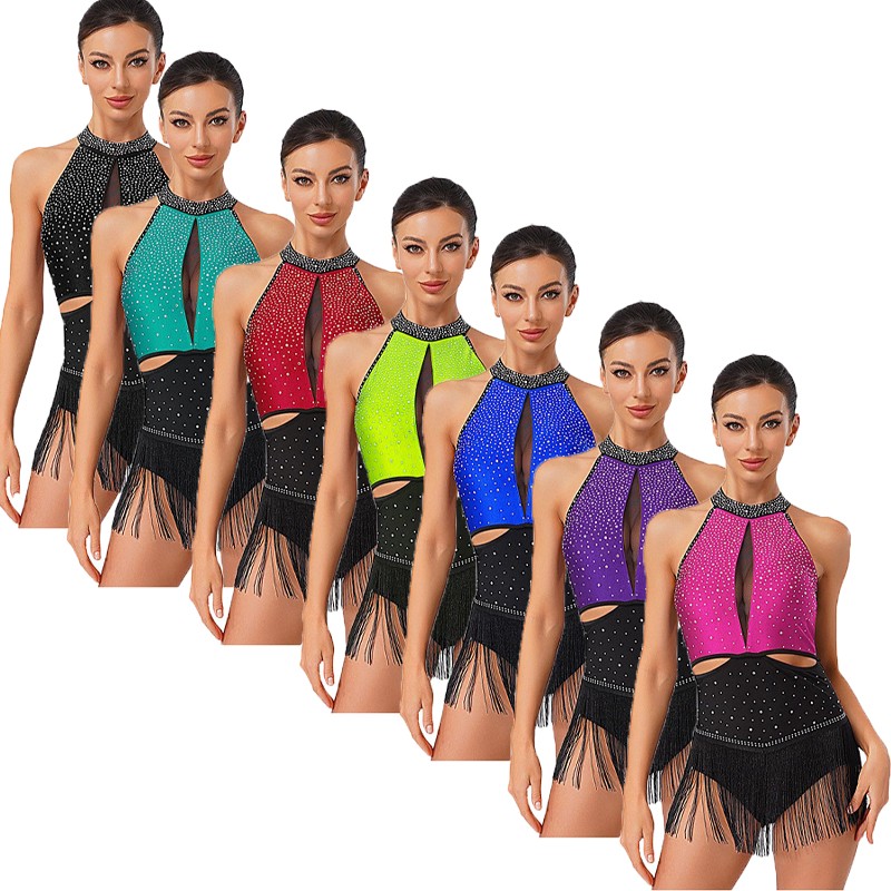 The flowy hem swing gently with the step to show the beauty of dance, the dress sparkles under the light to brighten up any performance.