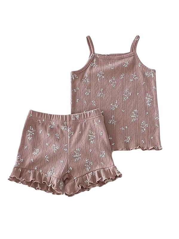 Baby Girls Camisole With Shorts Comfy 2-Piece Ruffled Hem Homewear Casual Cute