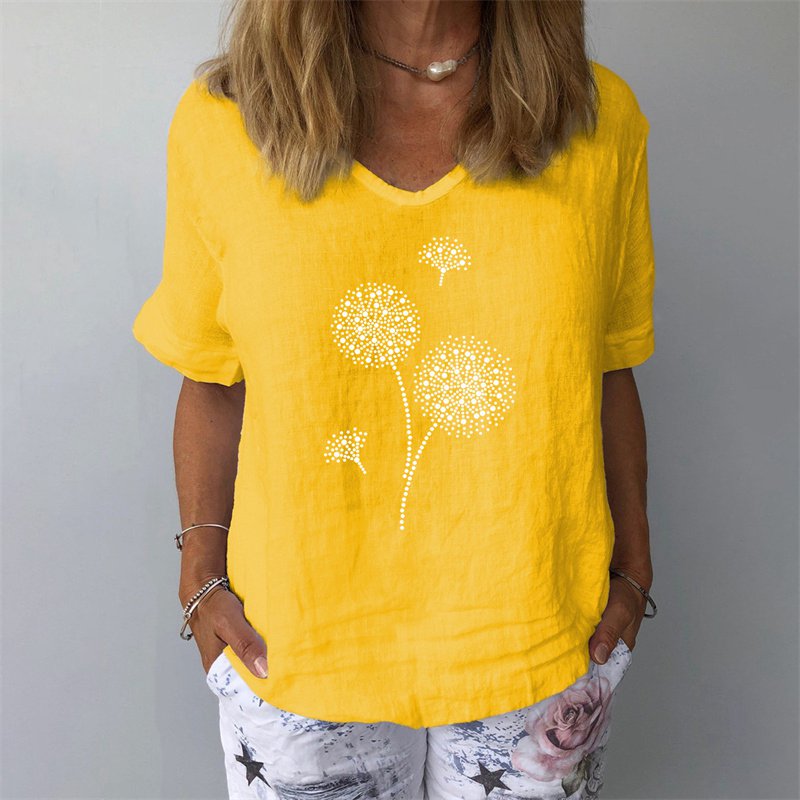 Amazon Independent Station Europe and America Cross Border Hot Sale Short Sleeve Cotton Linen Loose Casual Chic British Print Top.