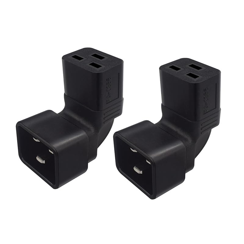 - 【Instructions for use】C20 to 90 Degree angled C19 Power adaptor. Male end has an C20 plug, female end has a 90 degree C19 connector. rated for 16 amps and 250V. Used to connect server and networking equipment to a power strip in a data rack.