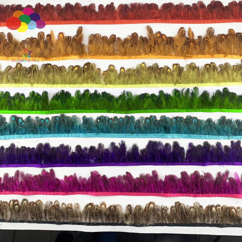 Pack of 10 Meter Natural Dyed Pheasant Feather Trim Fringe 2inch in Width DIY Decoration